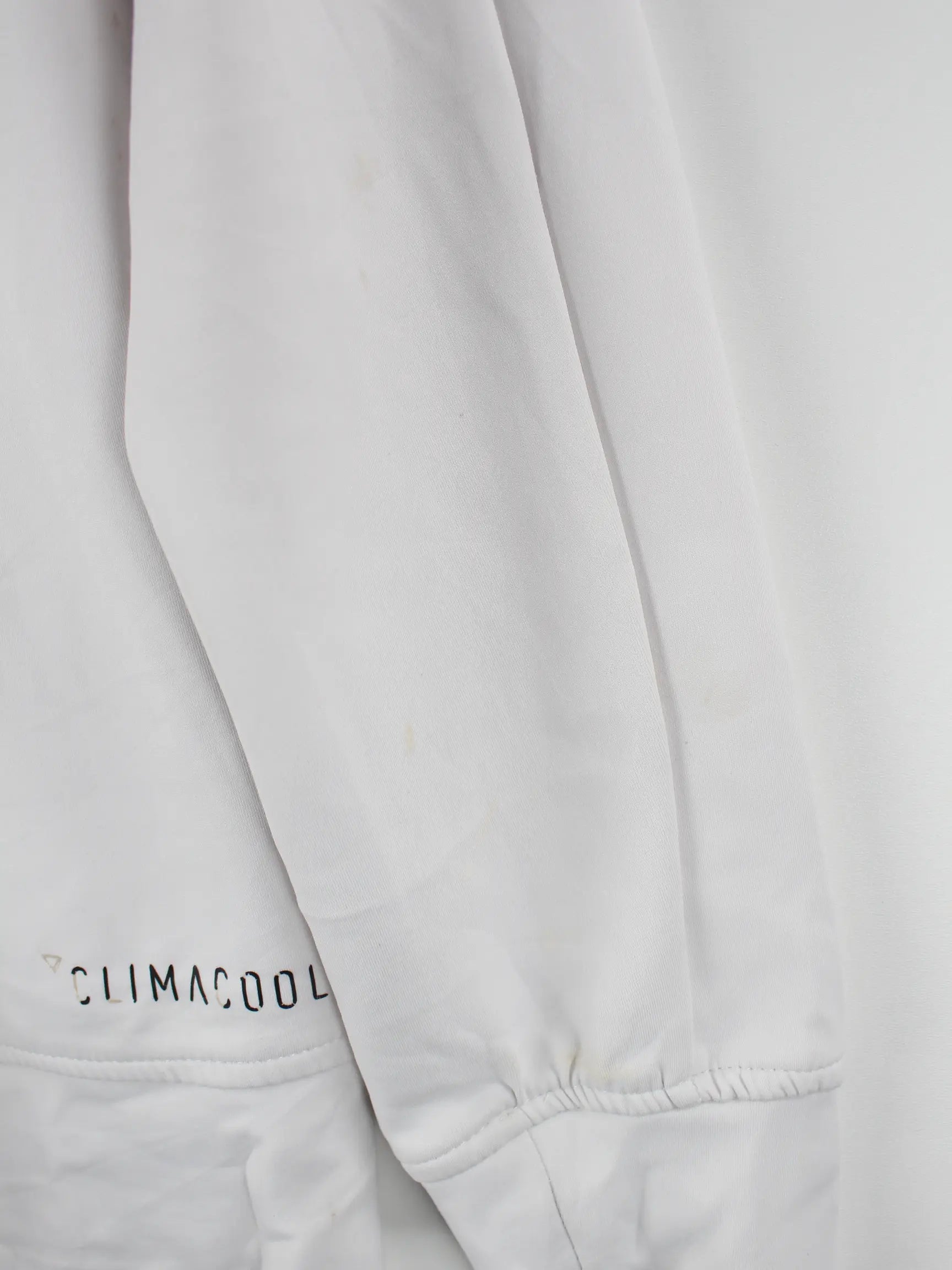 Trainingsjacke aus dem Hause Adidas in Größe XL. Sie ist aus Synthetik angefertigt und in Weiß bei uns zu bekommen.