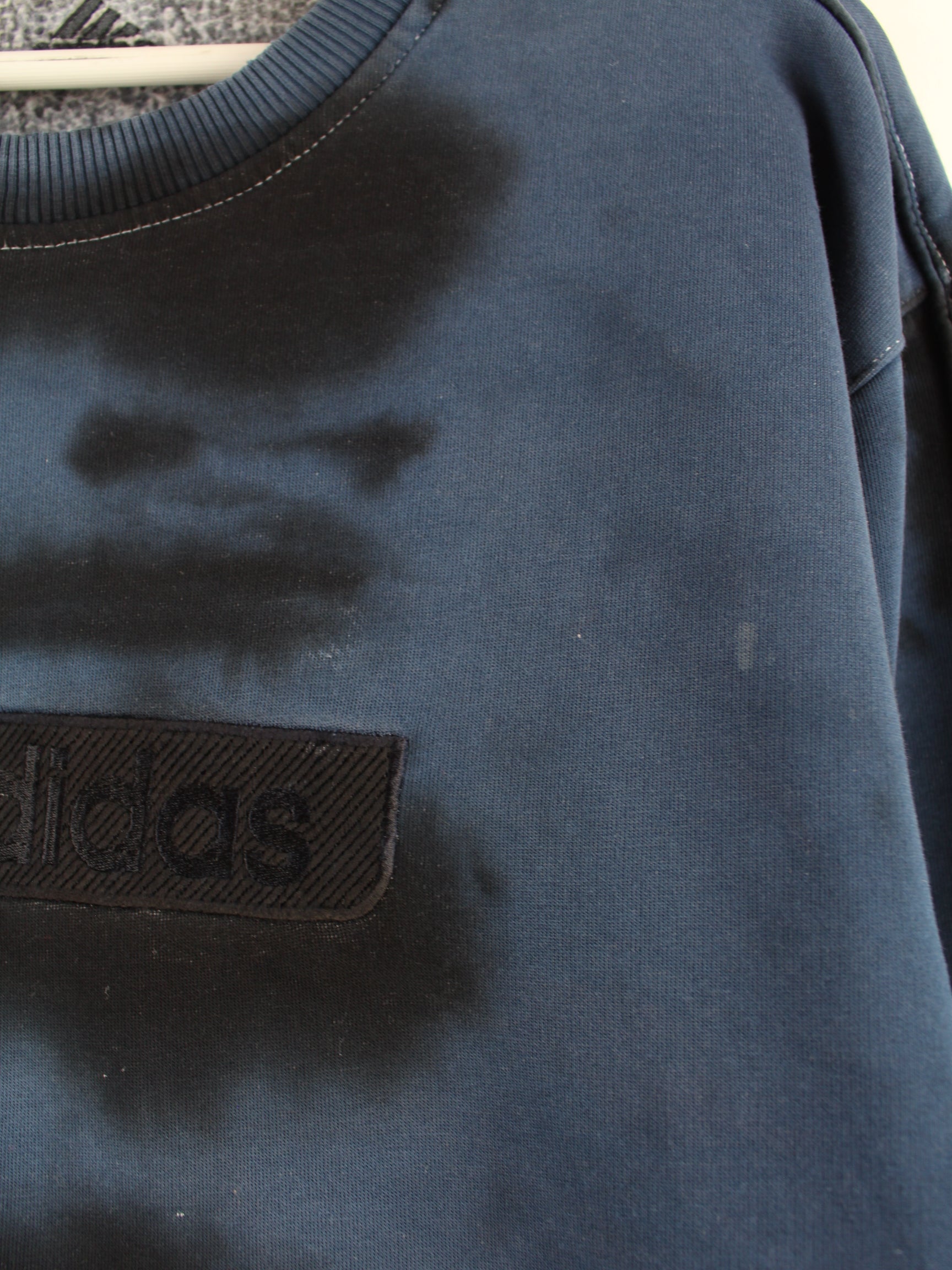 Blue sweater with embroidered motifs from the brand Adidas from the early 2000s in size XL. It is made from a cotton blend. We would describe the condition as 'fine' (see pictures).
