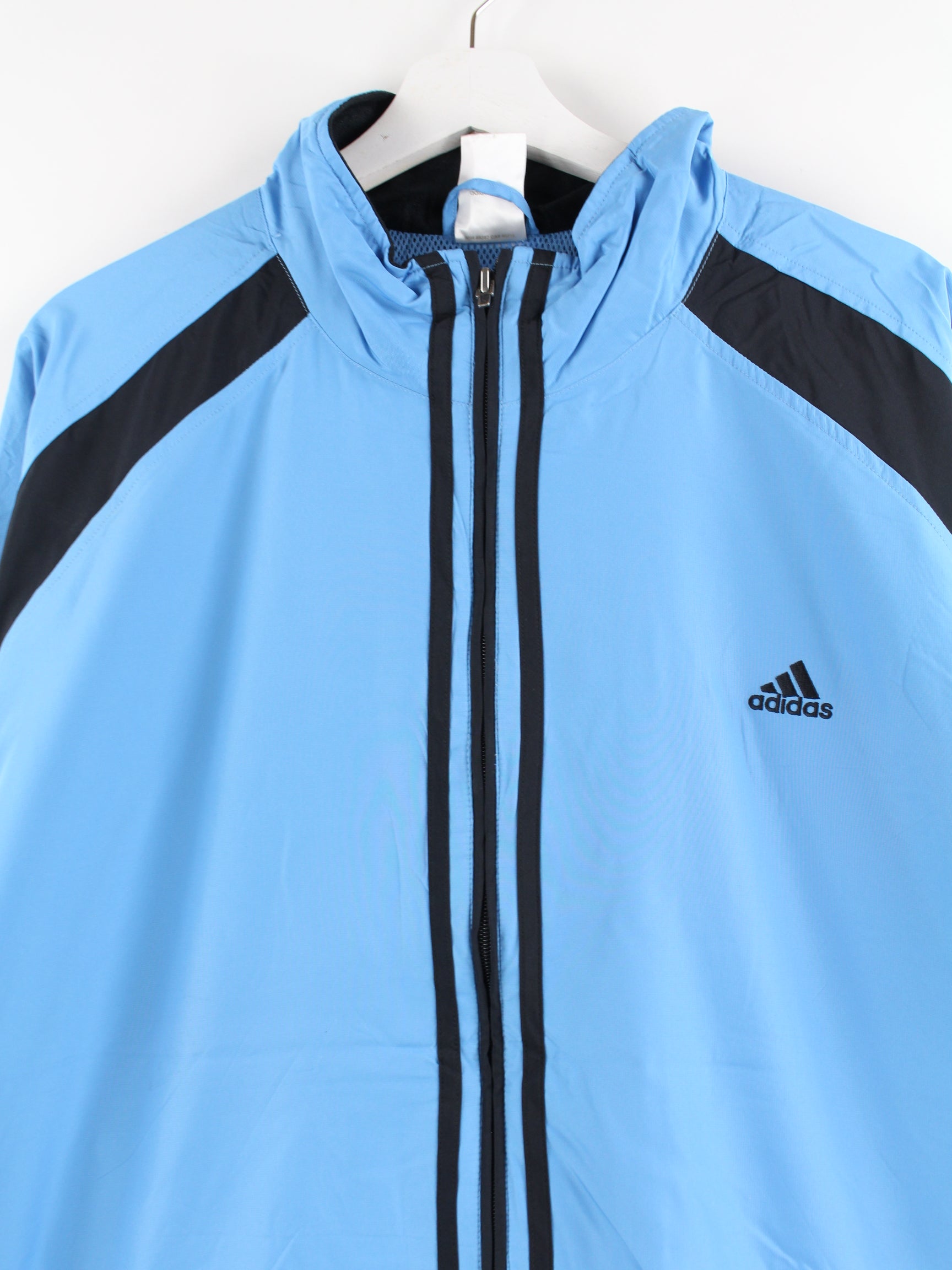 Adidas brand training jacket in size XXL from the early 2000s. It is made of synthetic and available in blue.