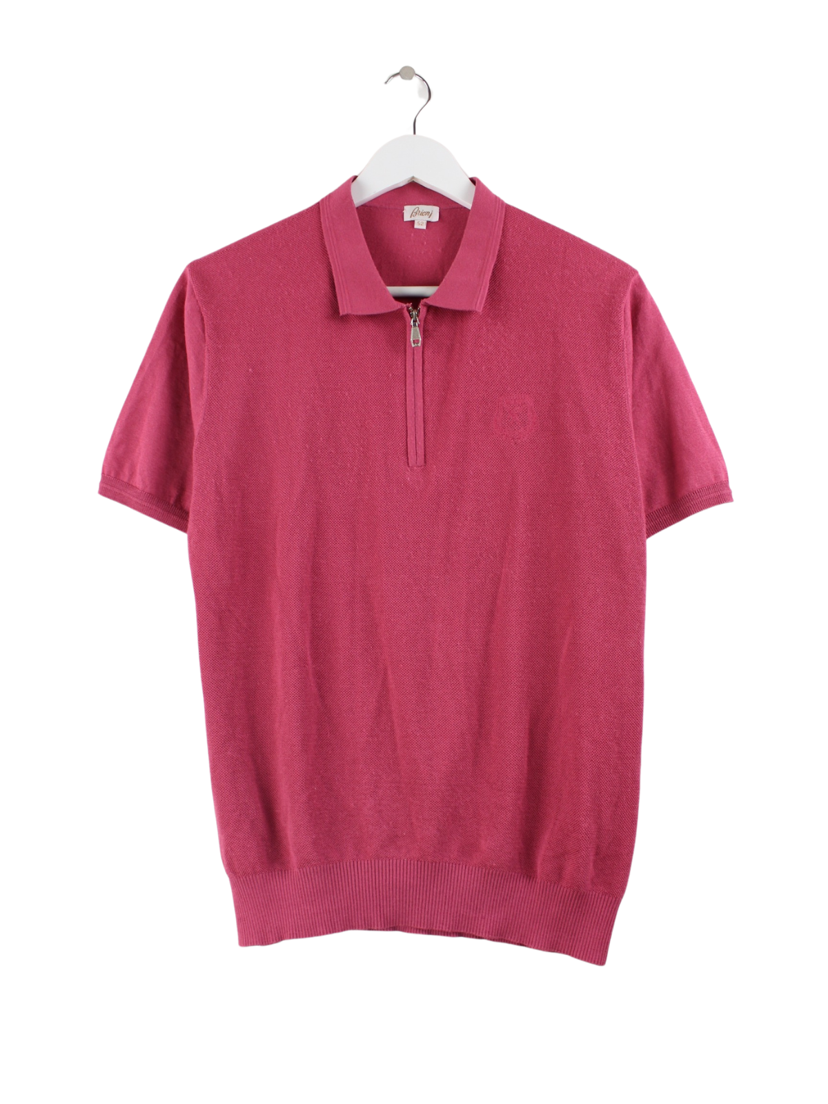 Polo shirt from the Brioni brand with a half zip in size S. It is made of silk and is available in red.