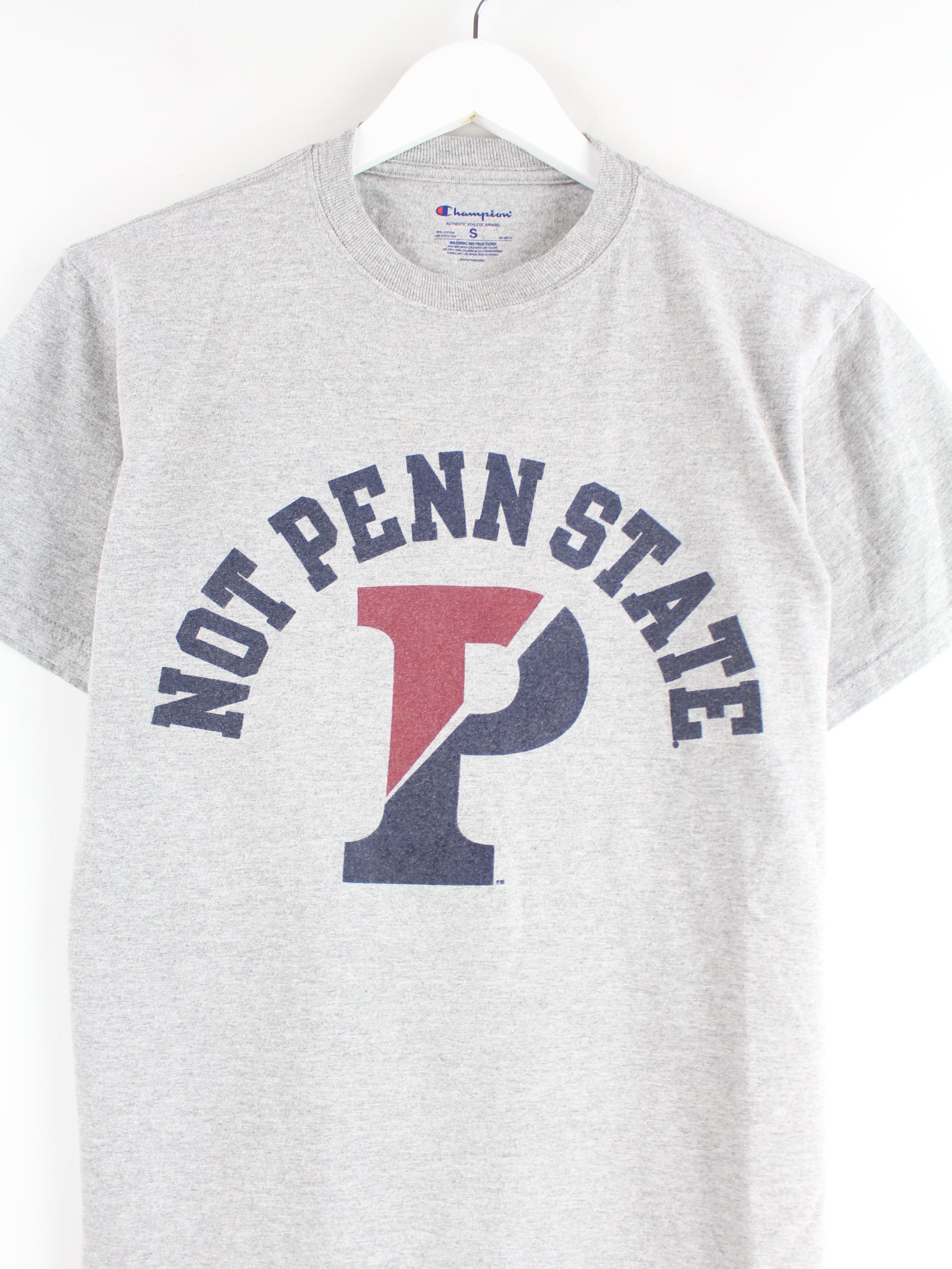 Grey t-shirt from the brand Champion in size XS. It is made of cotton and is in very good condition. With a great Pennstate print.