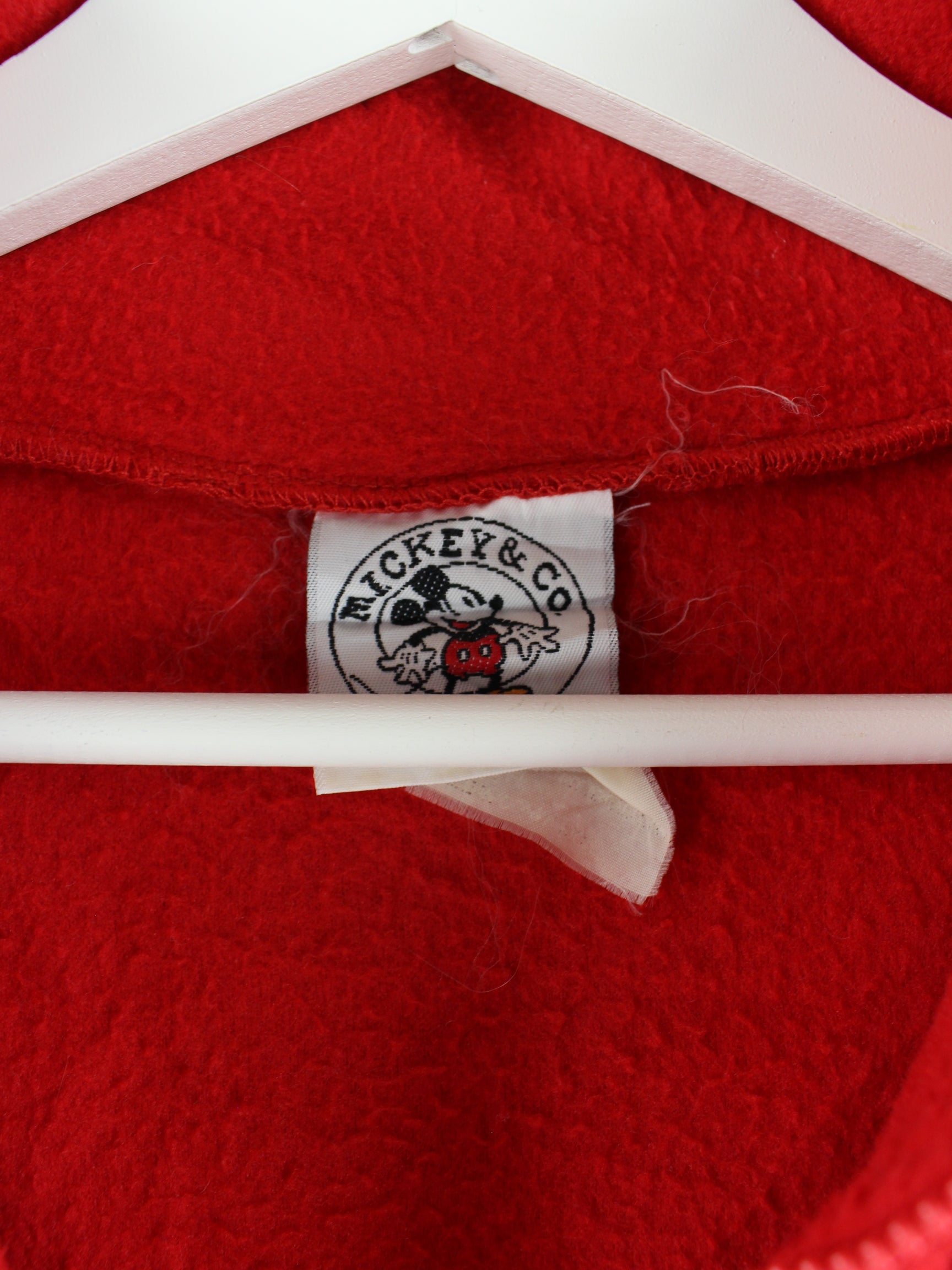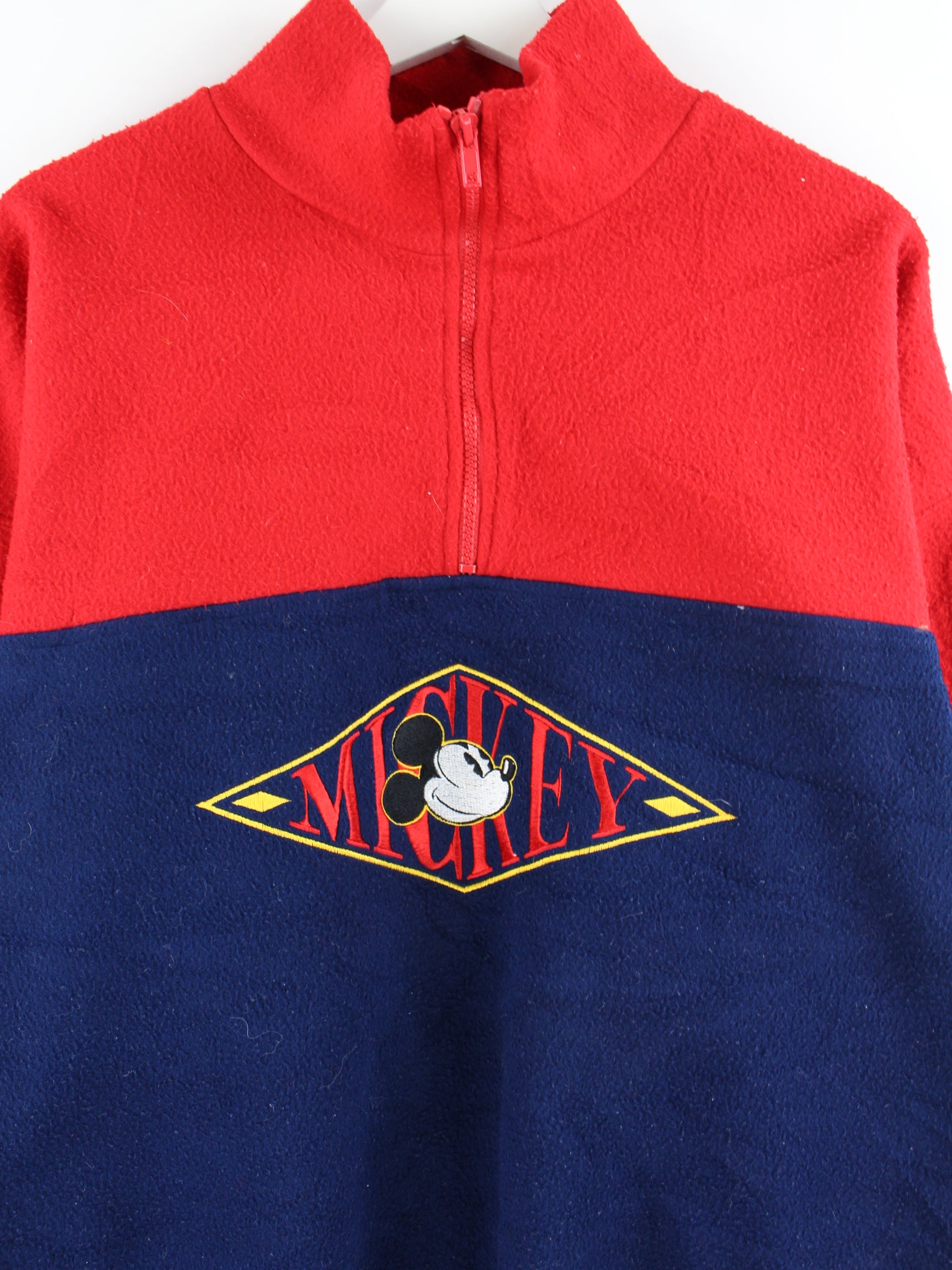 Blue sweater with embroidery and half zip from the Disney label from the 90s in size XL. It is made of synthetic material and is in very good condition.