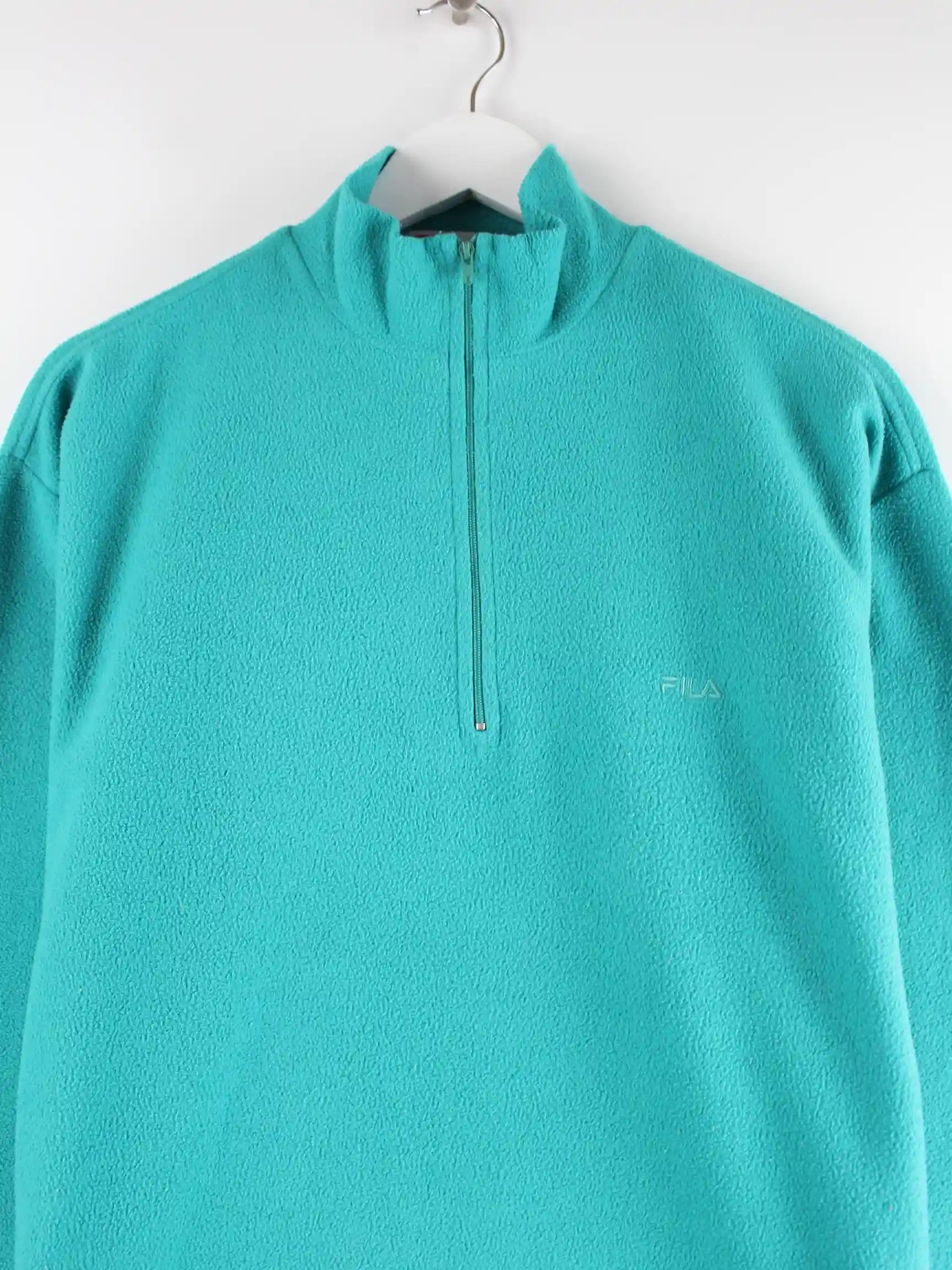 Grüne Leichte Jacke mit half Zip der Marke Fila aus den 90'ern in Größe L. Sie ist aus behaglichem Fleece gemacht und in sehr gutem Zustand lieferbar.