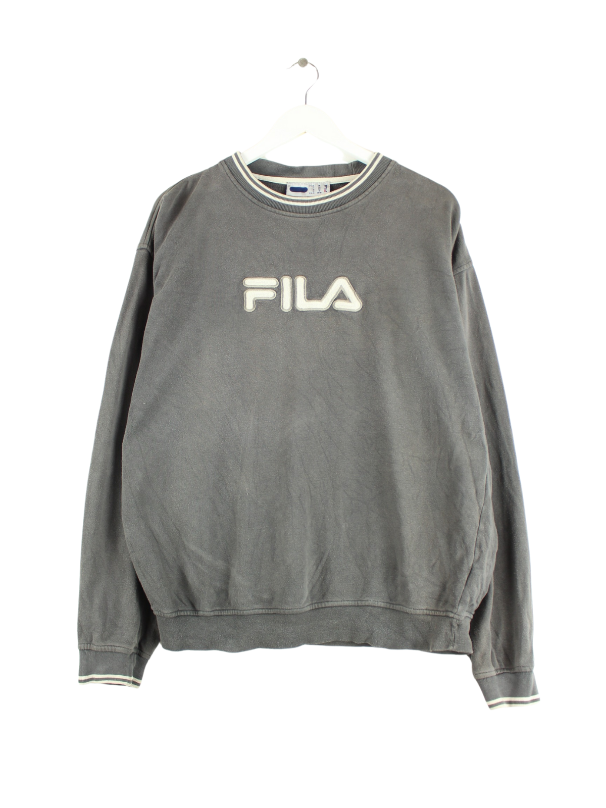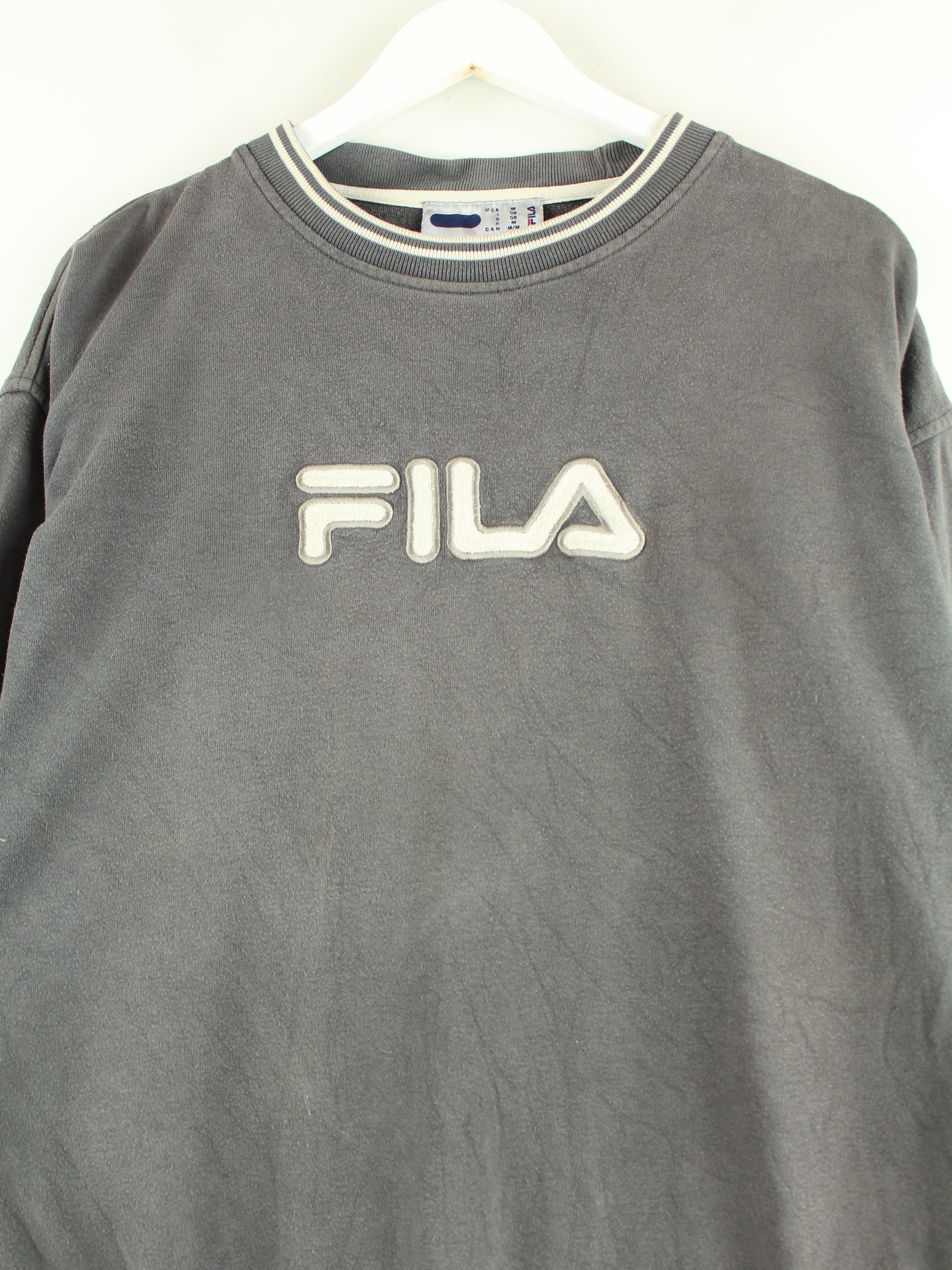 Sweater by Fila with embroidered logo in size L from the early 2000s. It is made from a cotton blend and is available in grey.