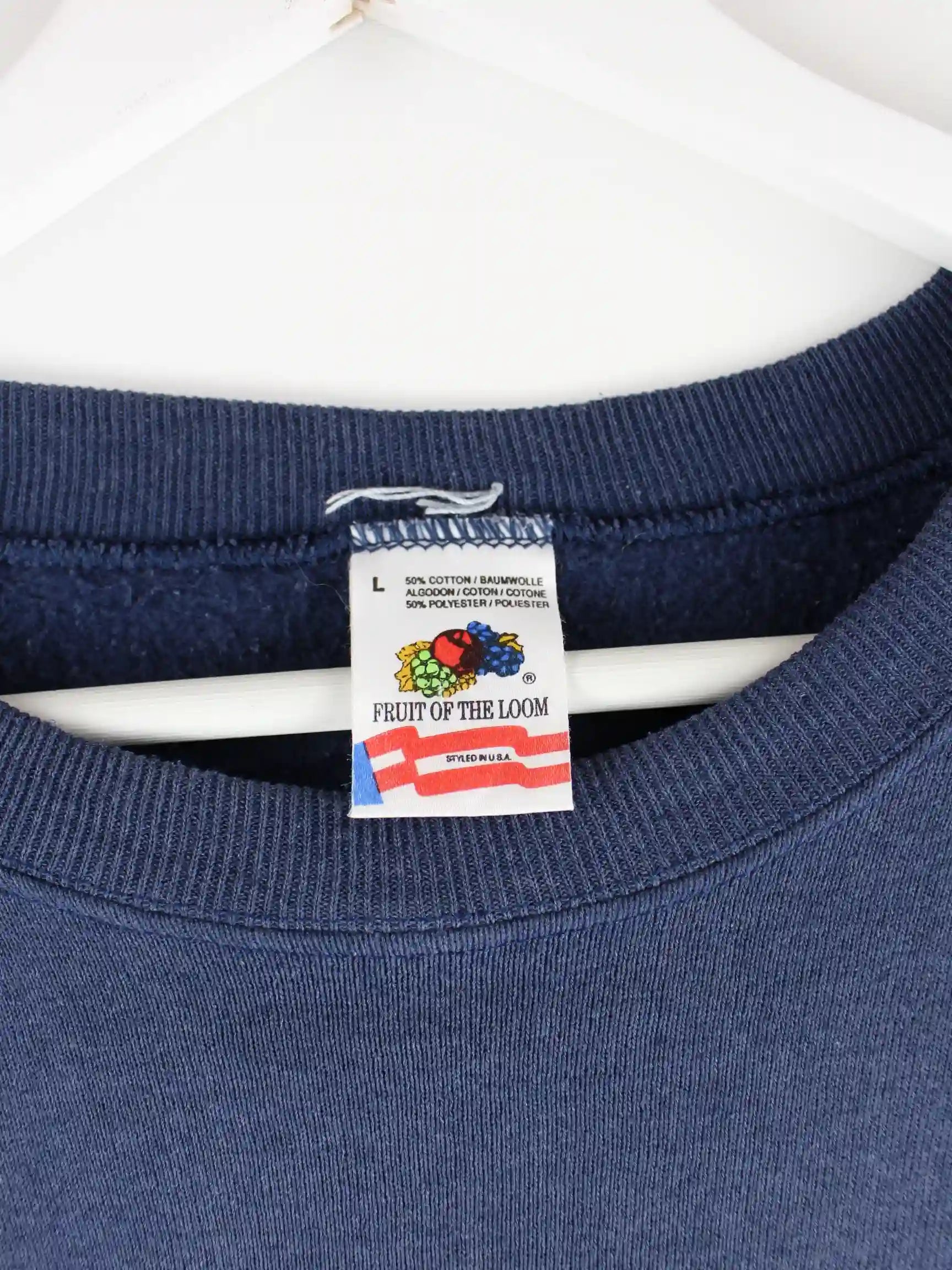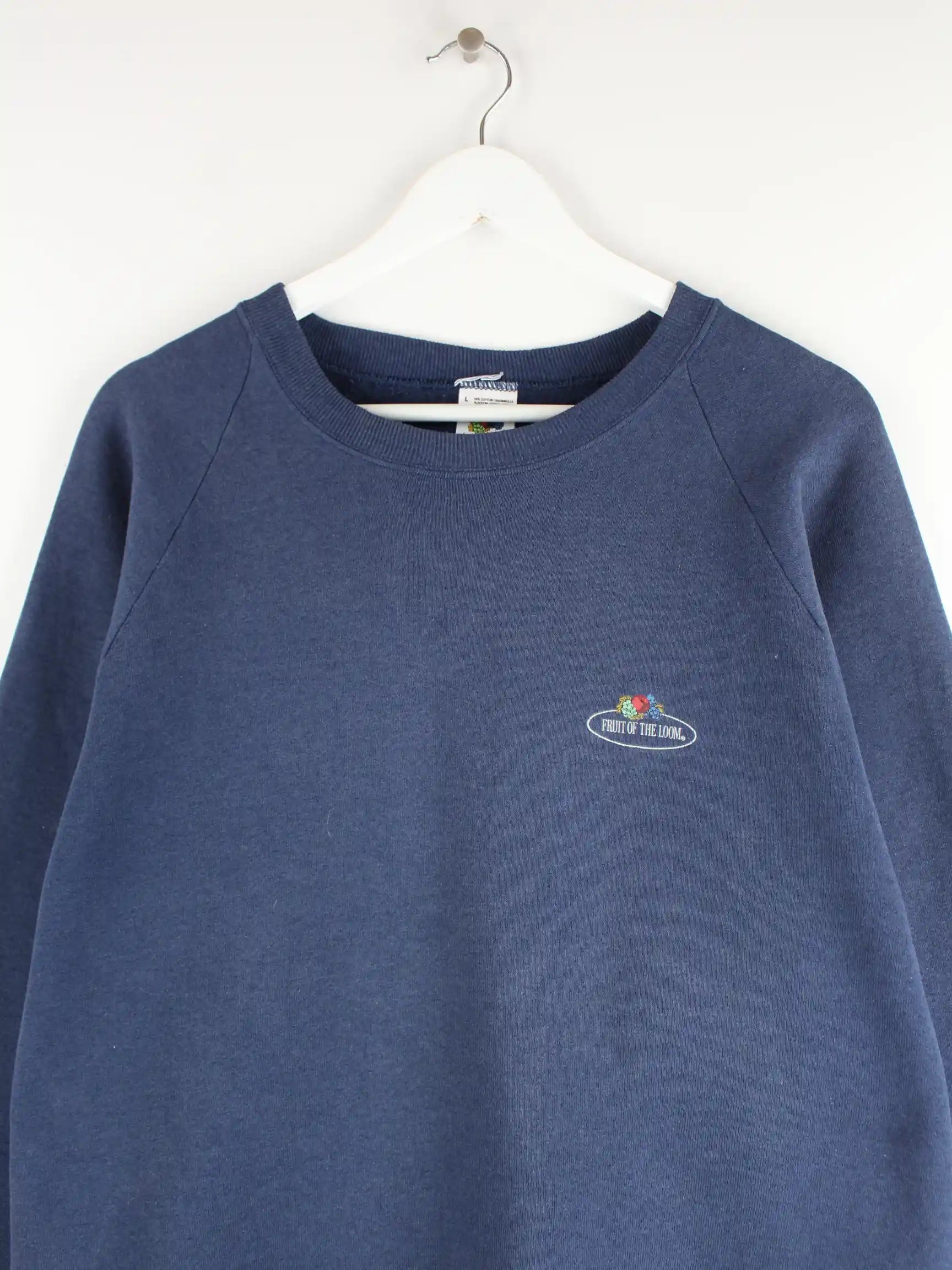 Blauer Sweater der Brand Fruit of the Loom aus den 90'ern in Größe L. Er ist aus einer Baumwollmischung und in gutem Zustand auf Lager.
