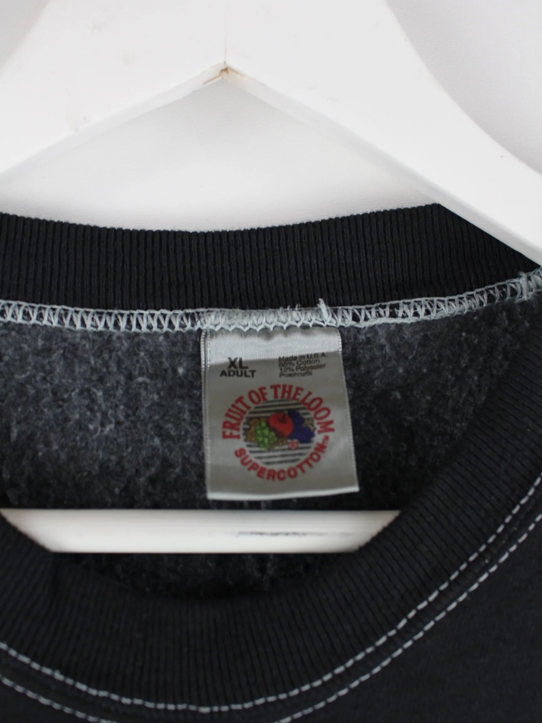 Sweater von Fruit of the Loom in Größe XL aus den 90'ern. Er ist aus einer Baumwollmischung und in Schwarz zu bekommen. Mit schickem Cola Print.