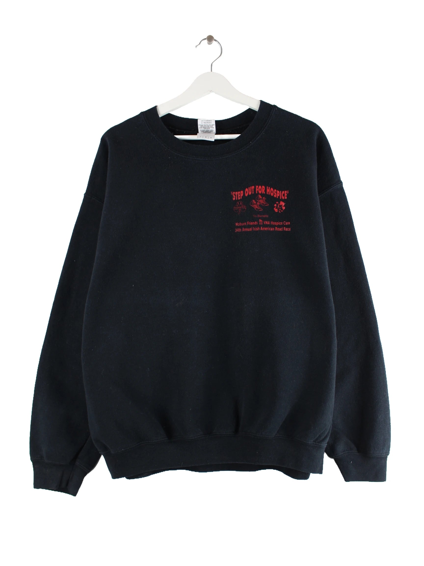 Sweater der Brand Gildan in Größe L. Er ist aus einer Baumwollmischung produziert und in Schwarz bei uns vorrätig. Mit schönem Print.