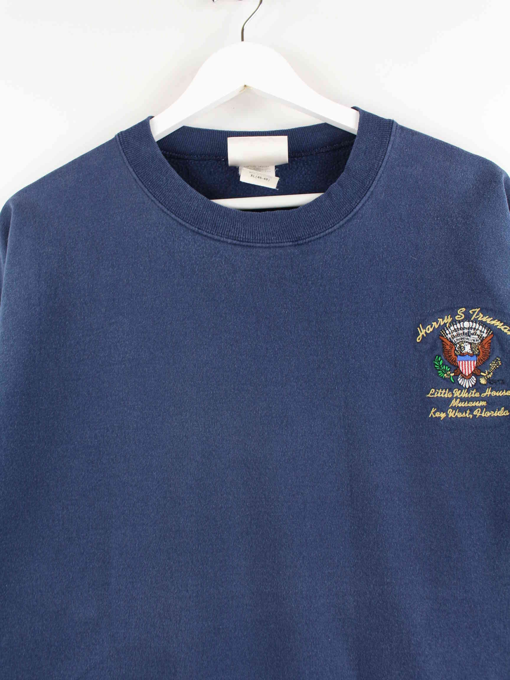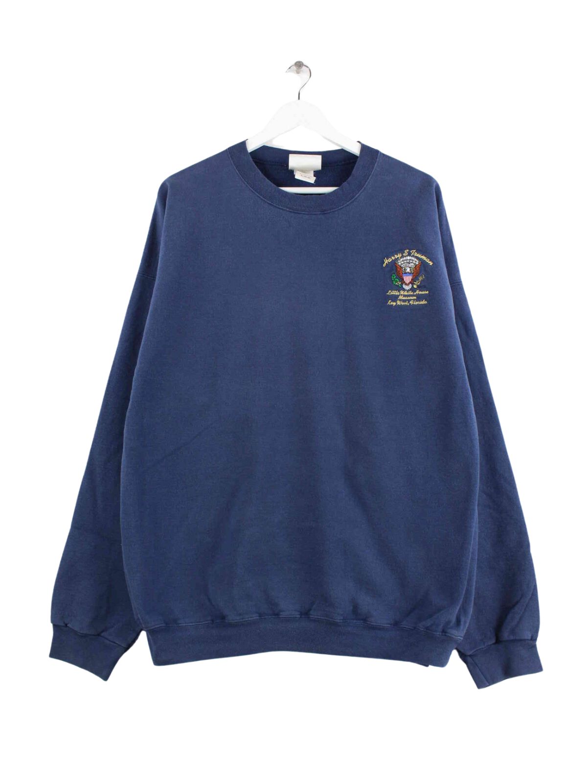 Sweater from Hanes with embroidery in size XL. It's made from a cotton blend and is stocked in blue.