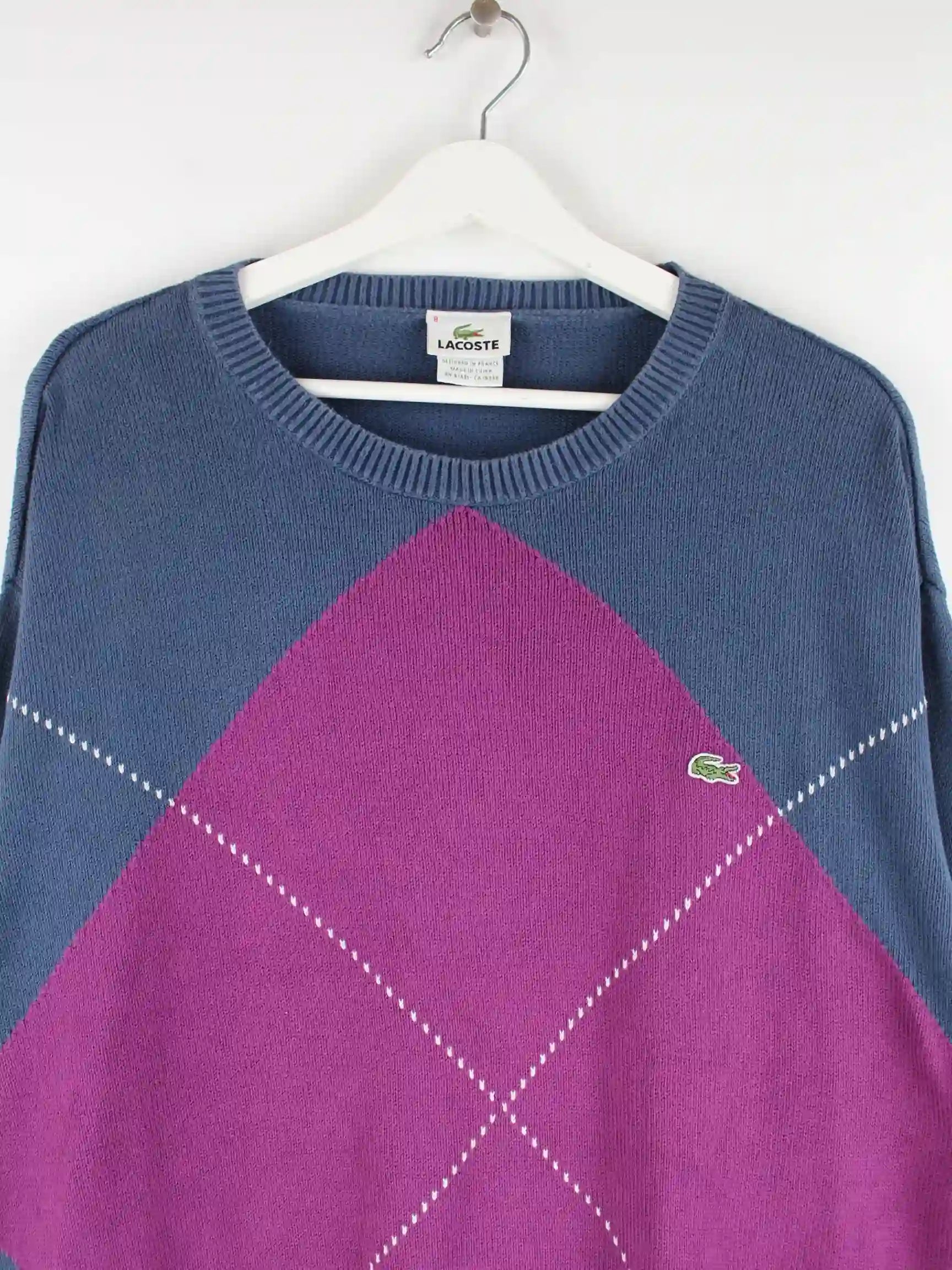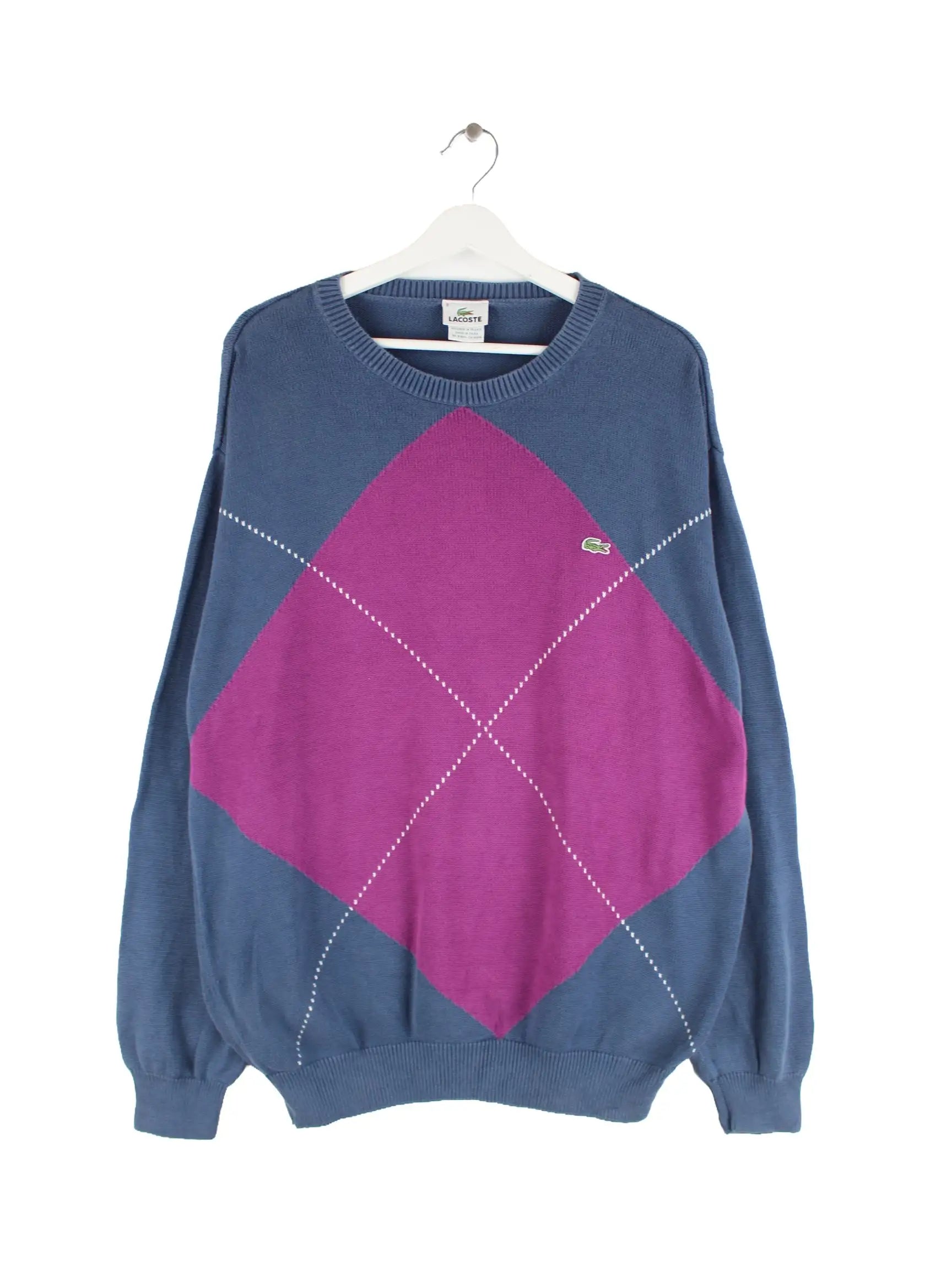 Blauer Pullover aus dem Hause Lacoste in Größe XL. Er ist aus Baumwolle hergestellt und in sehr gutem Zustand auf Lager.
