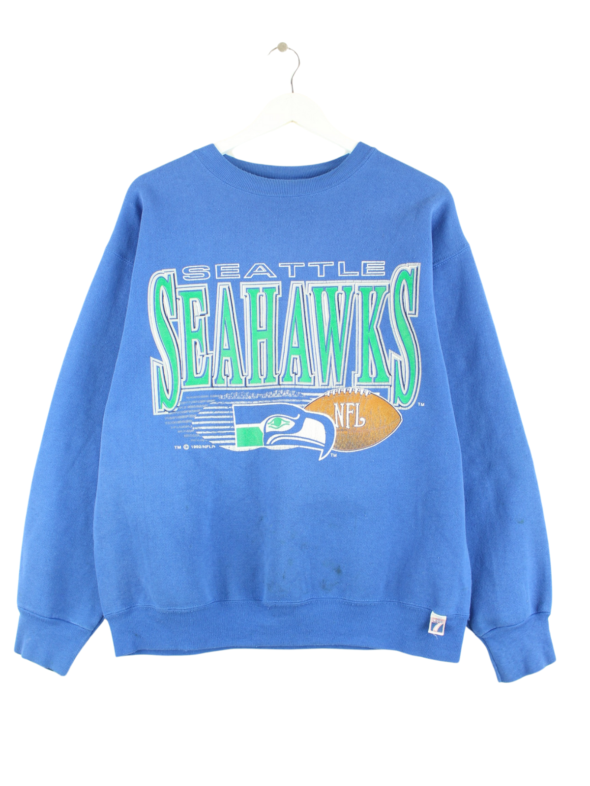 Logo 7 1992 Vintage Seattle Seahawks Print Sweater Blue M