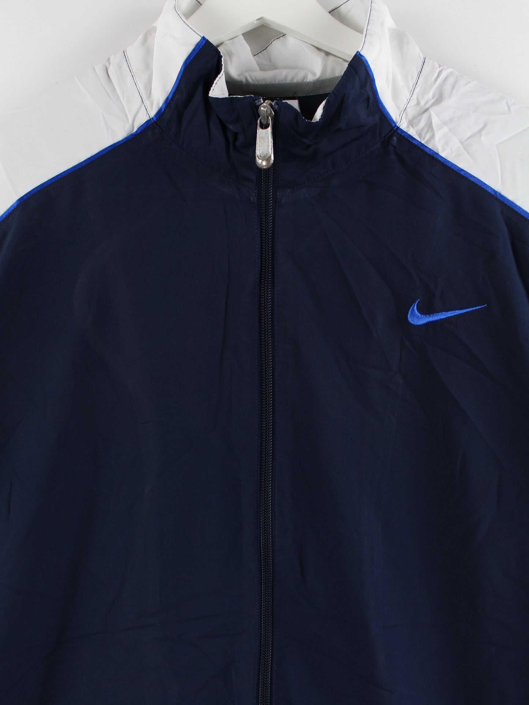 Blue training jacket from Nike in size XXL. It is made of synthetic material and is available from us in good condition.