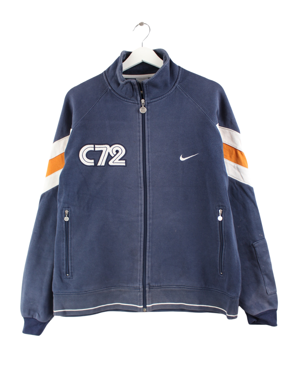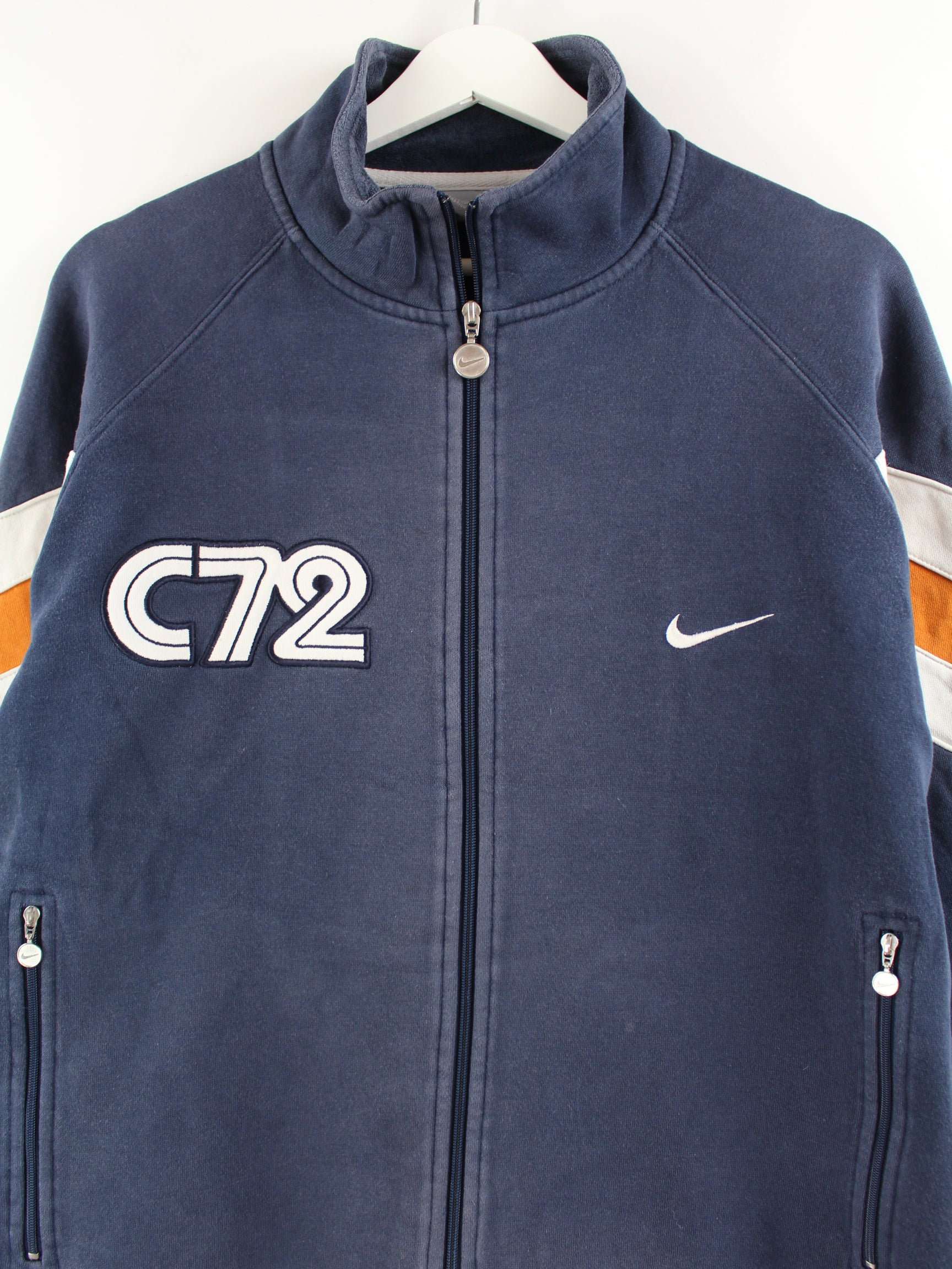 Blue sweat jacket with embroidery from the Nike label from the early 2000s in size M. It is made from a cotton blend. We would describe the condition as 'OK' (see pictures).