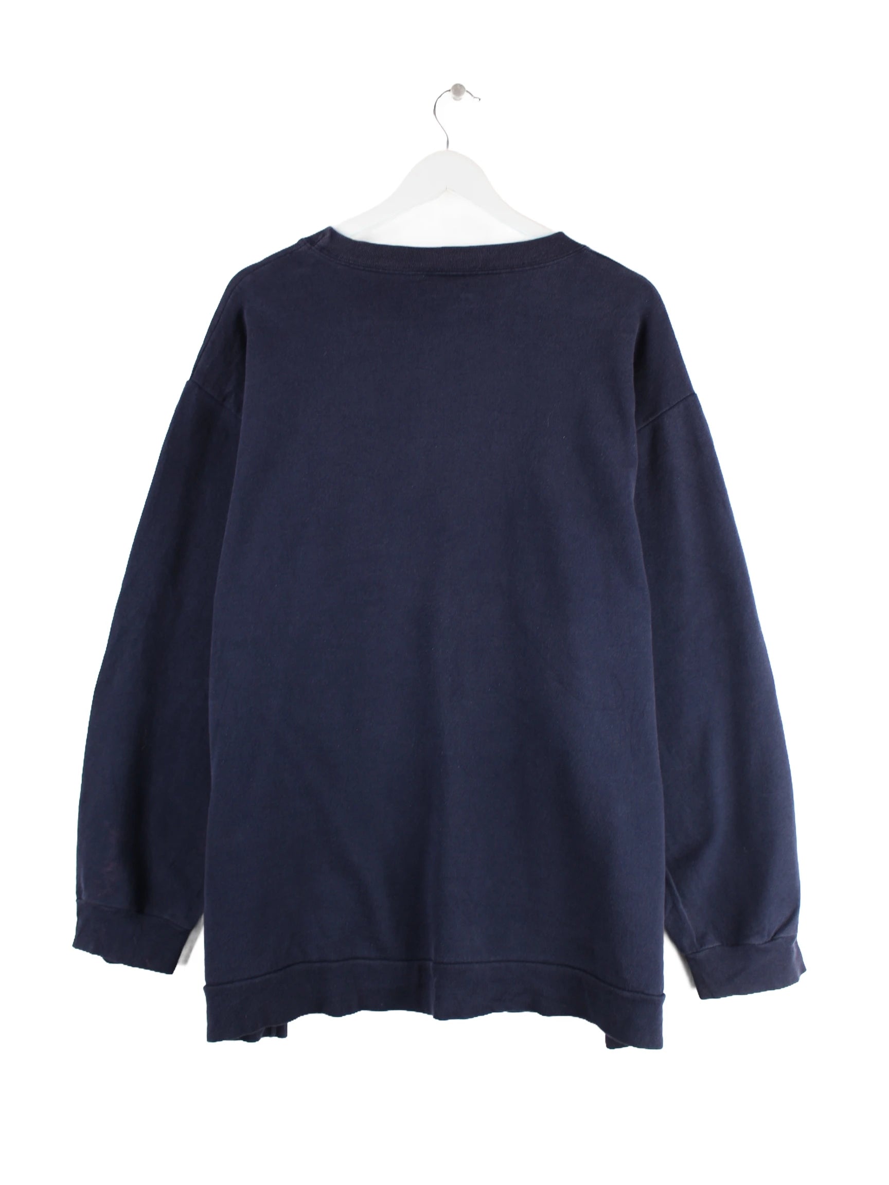Blauer Sweater von Pooh aus den 90'ern in Größe XXL. Er ist aus einer Baumwollmischung produziert und in gutem Zustand bei uns vorrätig. Mit chiquem Vintage Print.