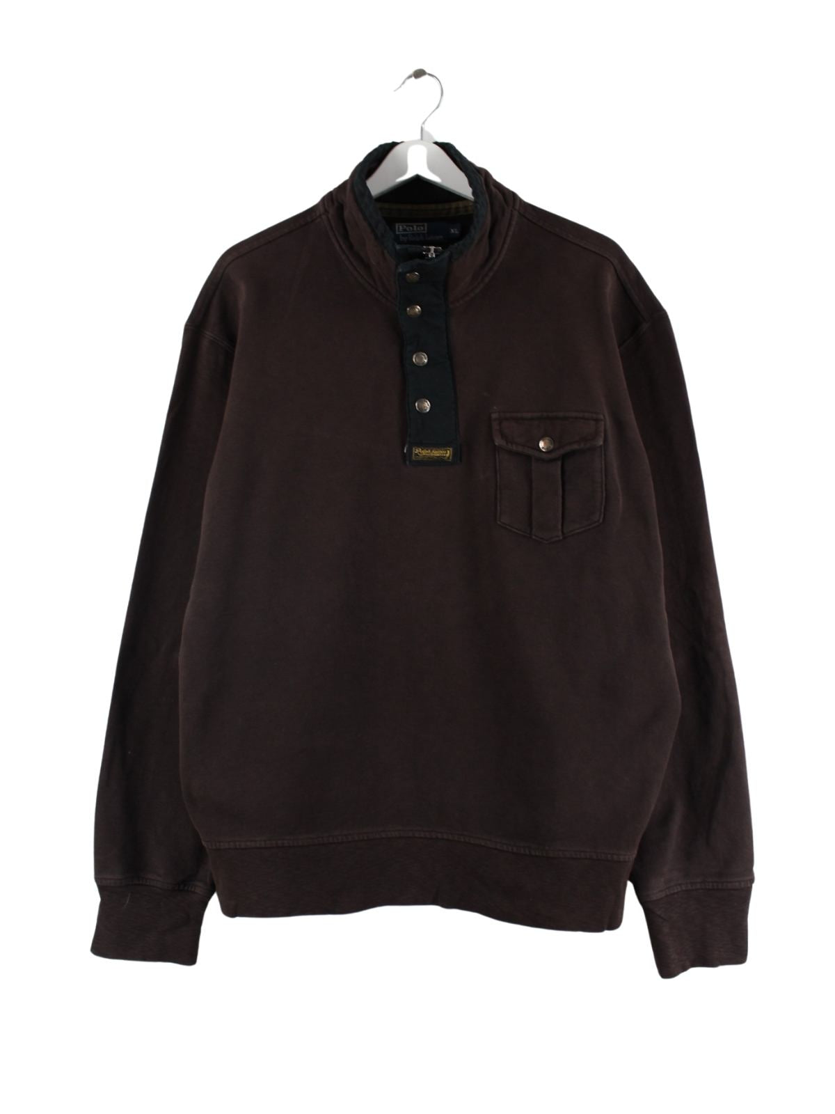 Sweater der Brand Ralph Lauren mit half Zip in Größe XL aus den 90'ern. Er ist aus einer Baumwollmischung angefertigt und in Braun lieferbar.