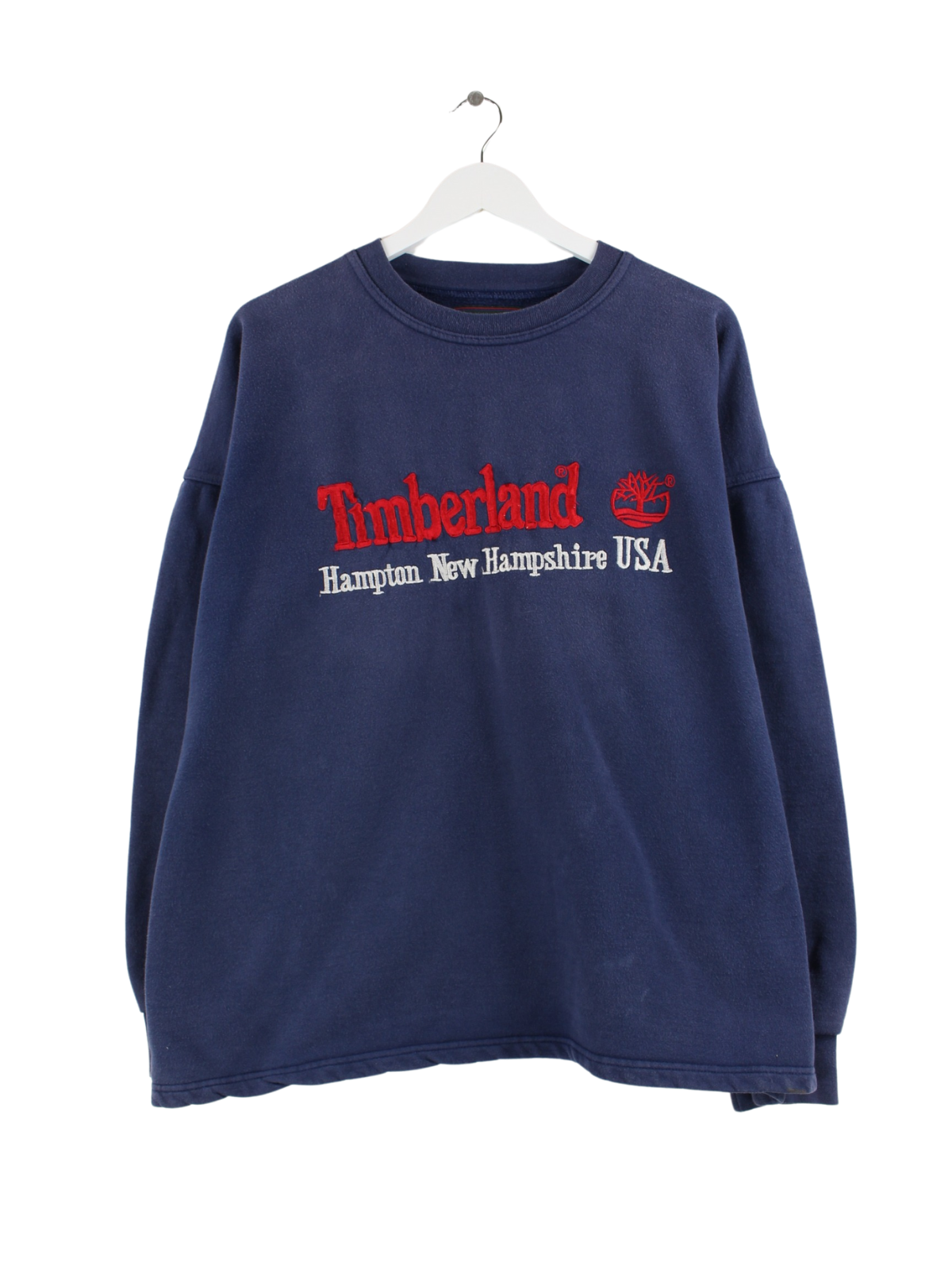 Blue sweater with embroidered motifs from the Timberland label from the 90s in size XL. It is made of a cotton blend and is in good condition.