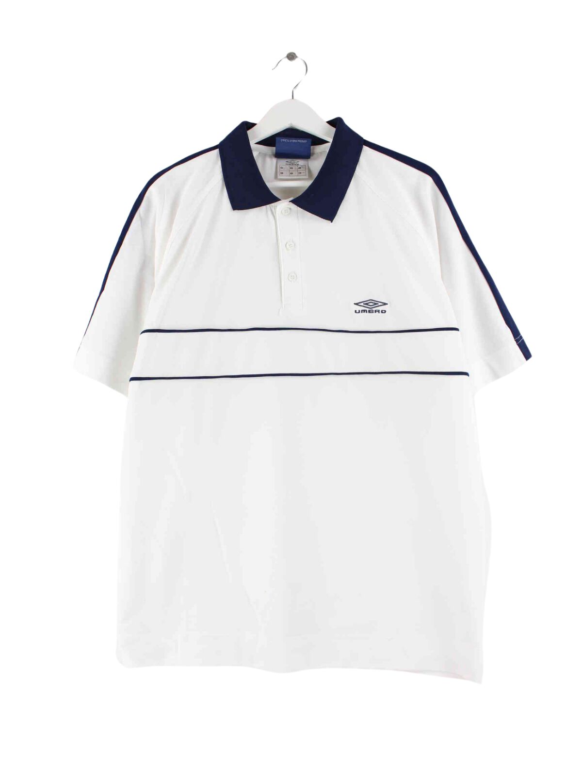 Polo shirt from the Umbro brand in size XL from the 90s. It is made of synthetic material and is available in white.