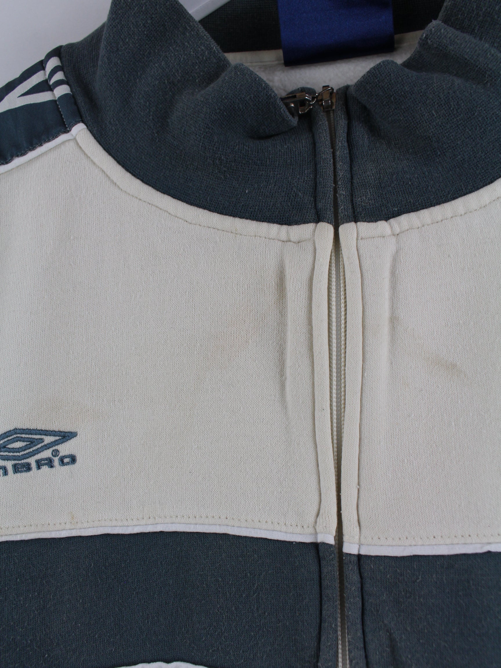 Sweat jacket from Umbro in size XXL from the 90s. It is made from a cotton blend and is available in white.