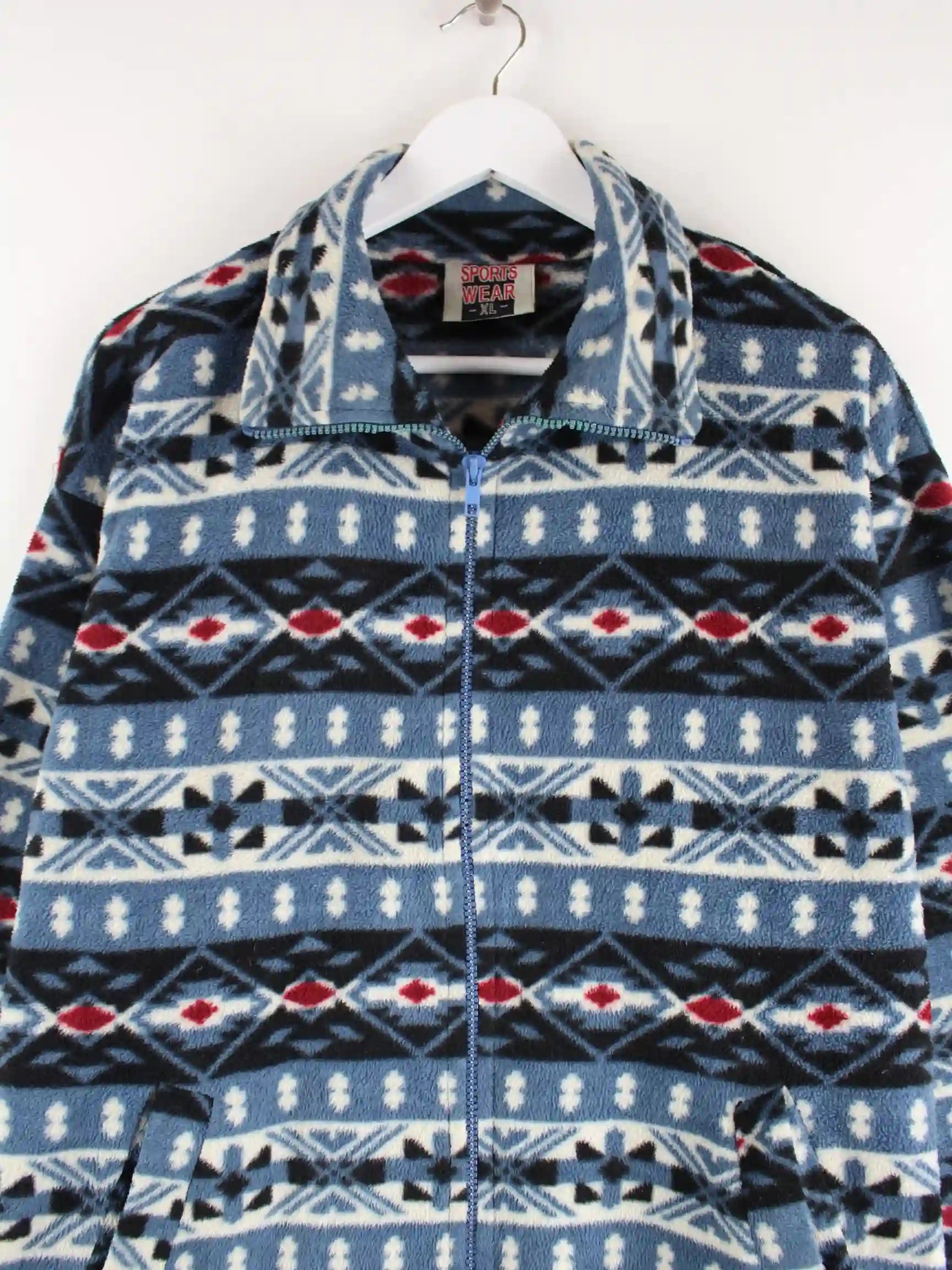 Vintage 90s Crazy Pattern Fleece Jacke Blau XL