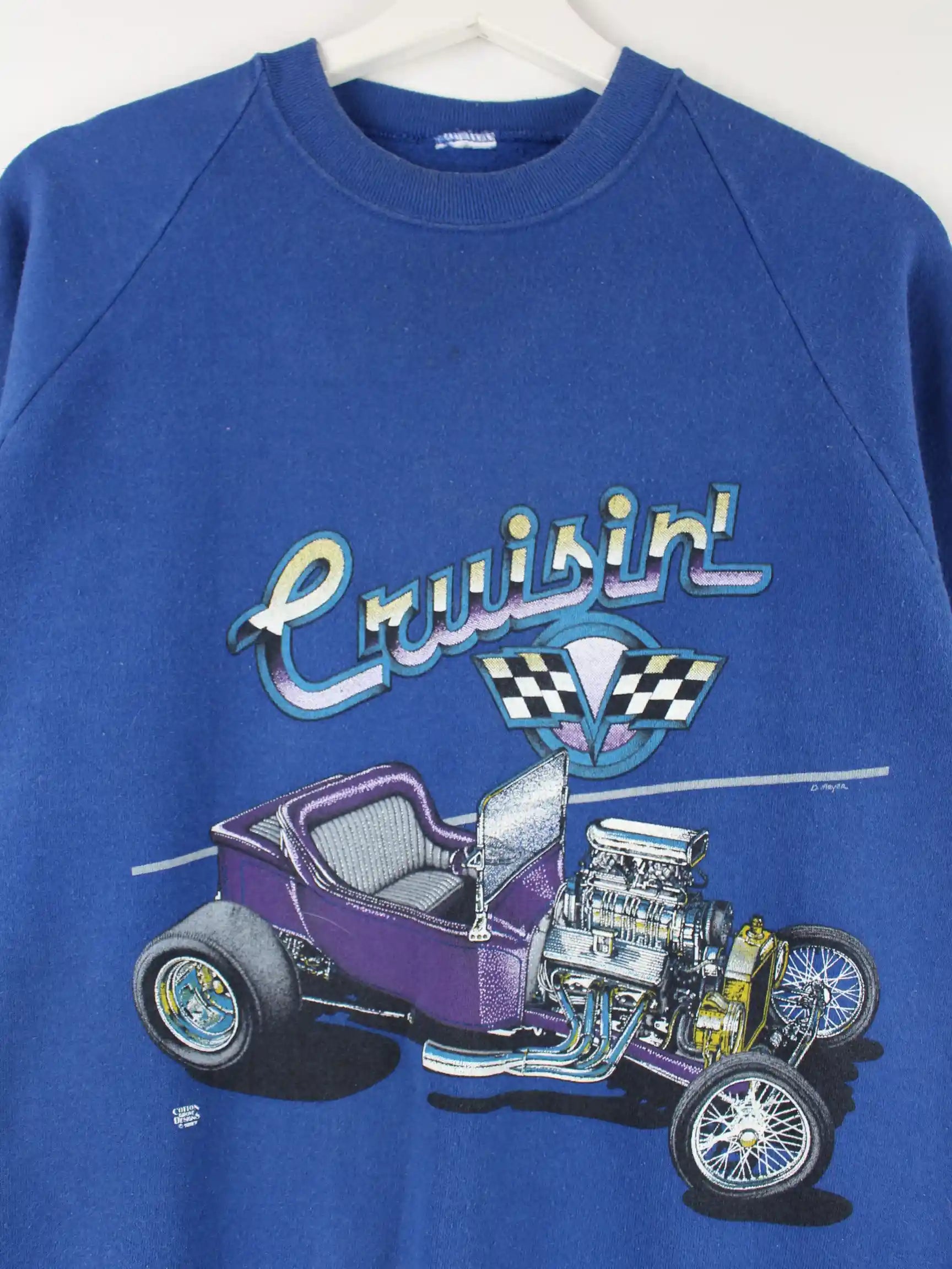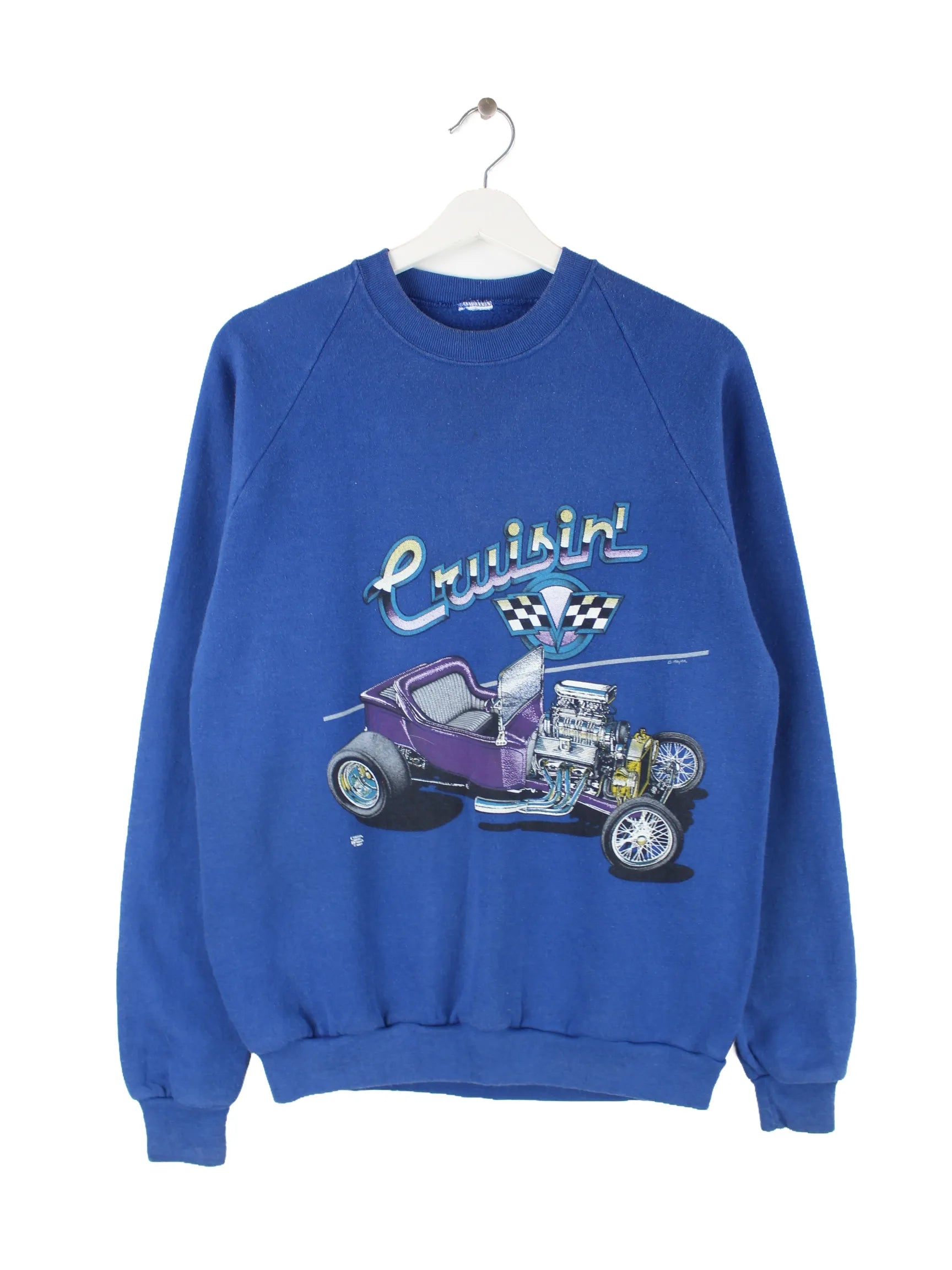 Vintage 90s Cruisin Car Print Sweater Blau M