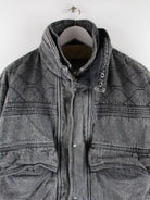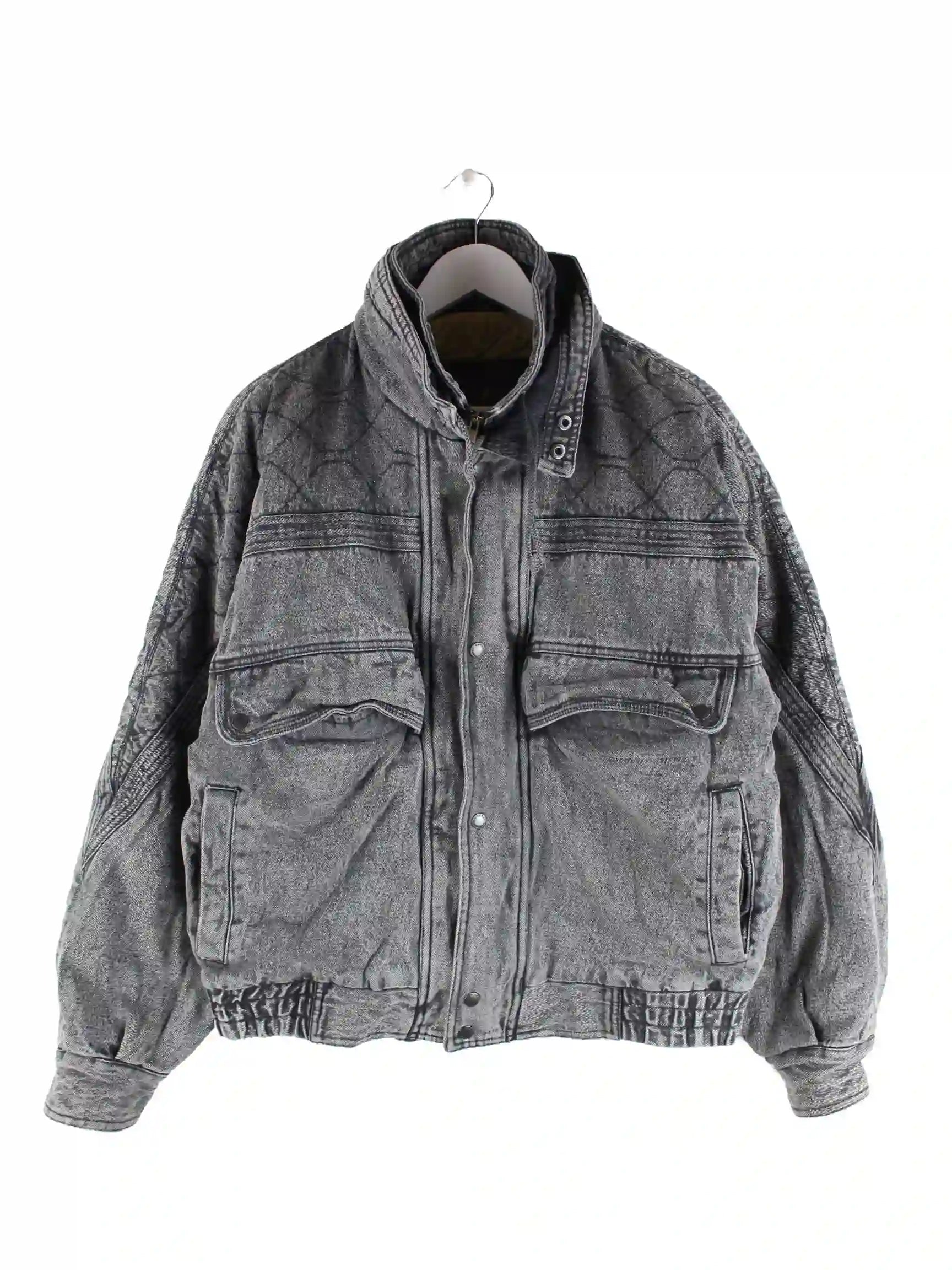 Graue Vintage Jacke aus den 90'ern in Größe M. Sie ist aus Baumwolle gefertigt und in sehr gutem Zustand zu bekommen.