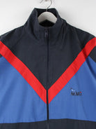 Mehrfarbige Vintage Trainingsjacke aus den 90'ern in Größe M. Sie ist aus Synthetik produziert und in sehr gutem Zustand bei uns zu bekommen.