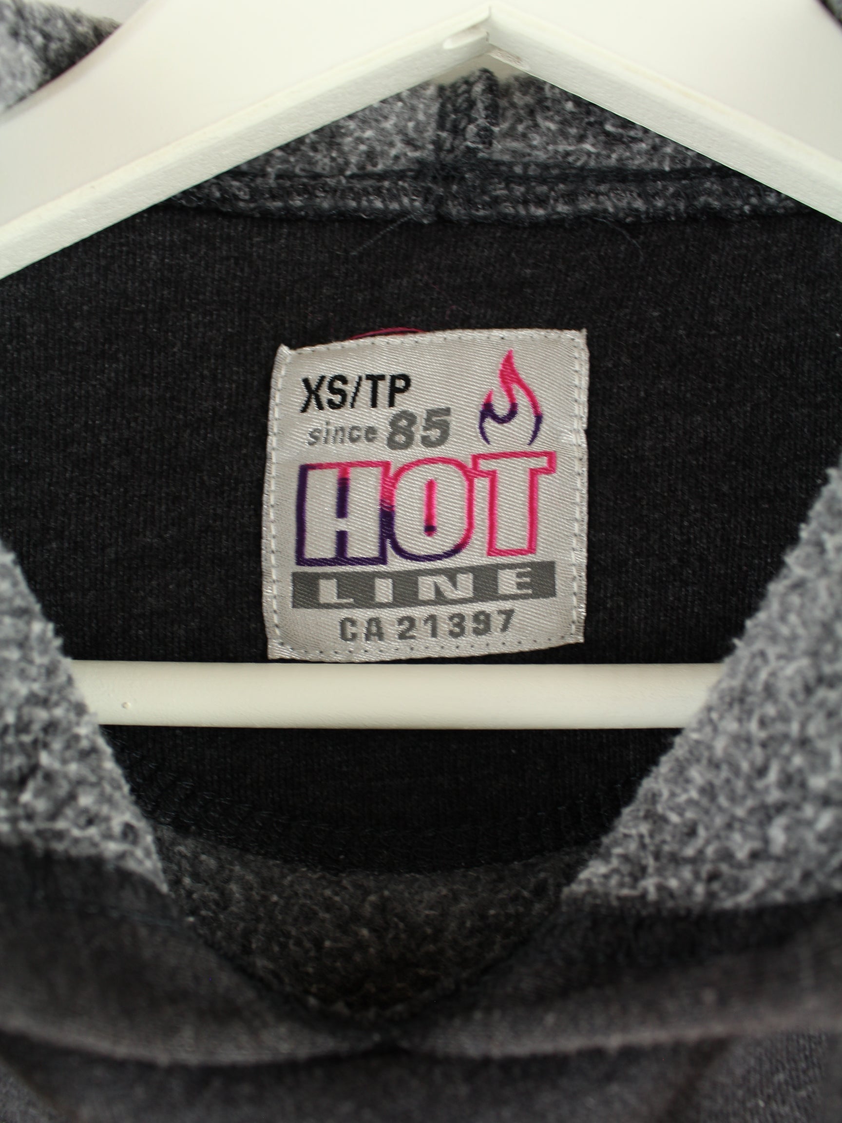 Grey vintage hoodie with embroidery from the 90's in size XS. It is made of a cotton blend and is in very good condition.