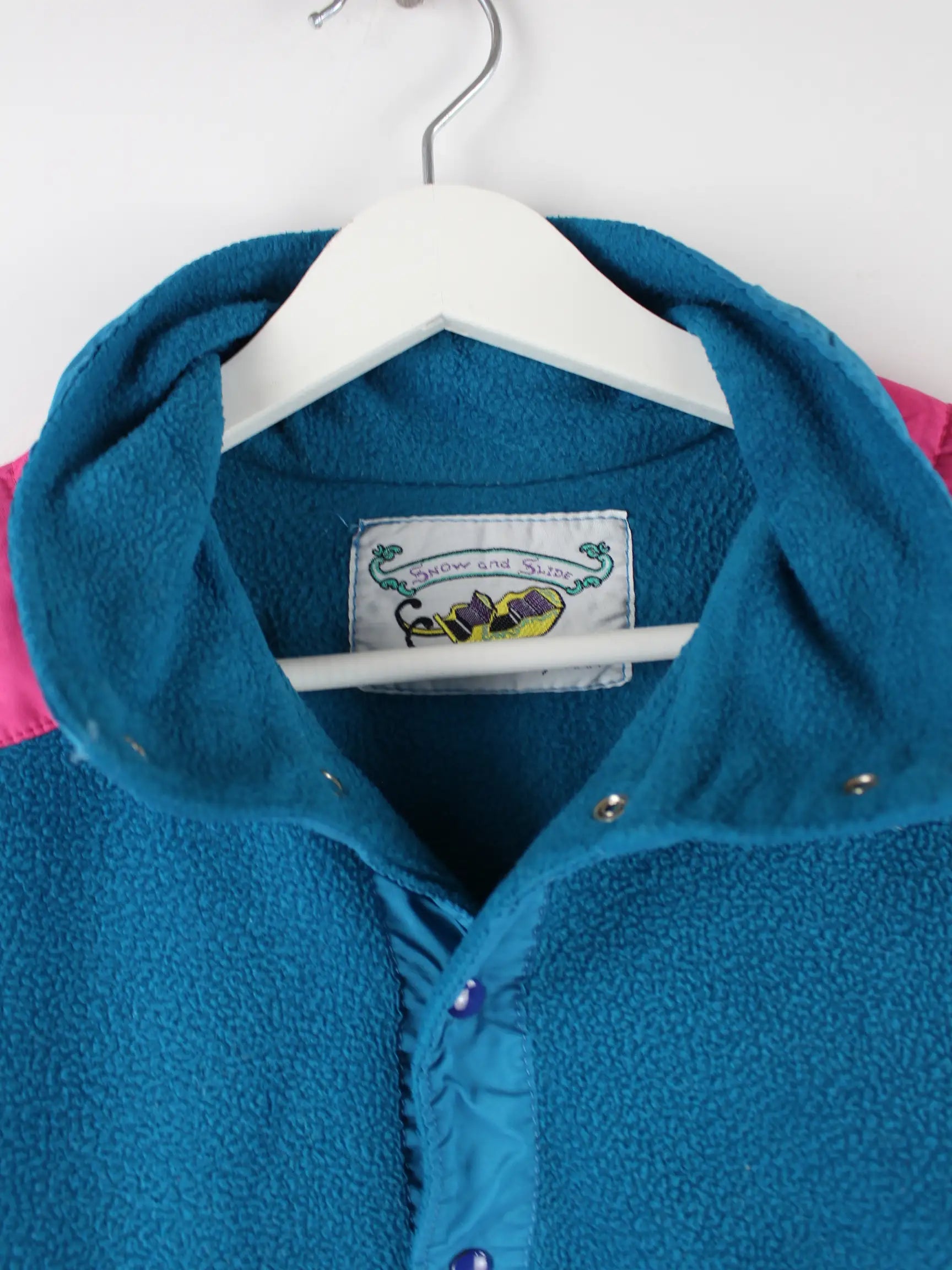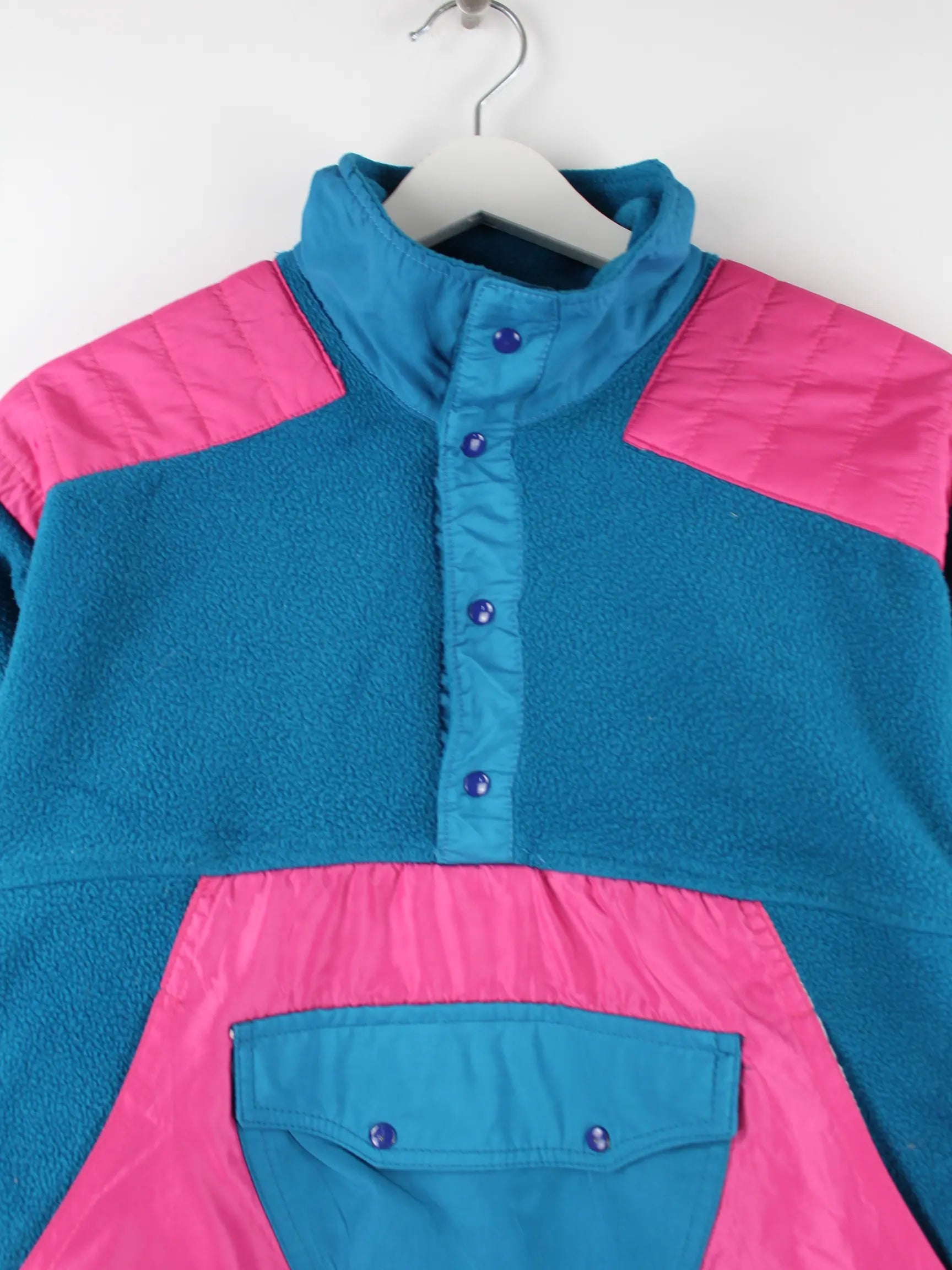 Vintage Damen 80s Half Button Fleece Jacke Türkis S