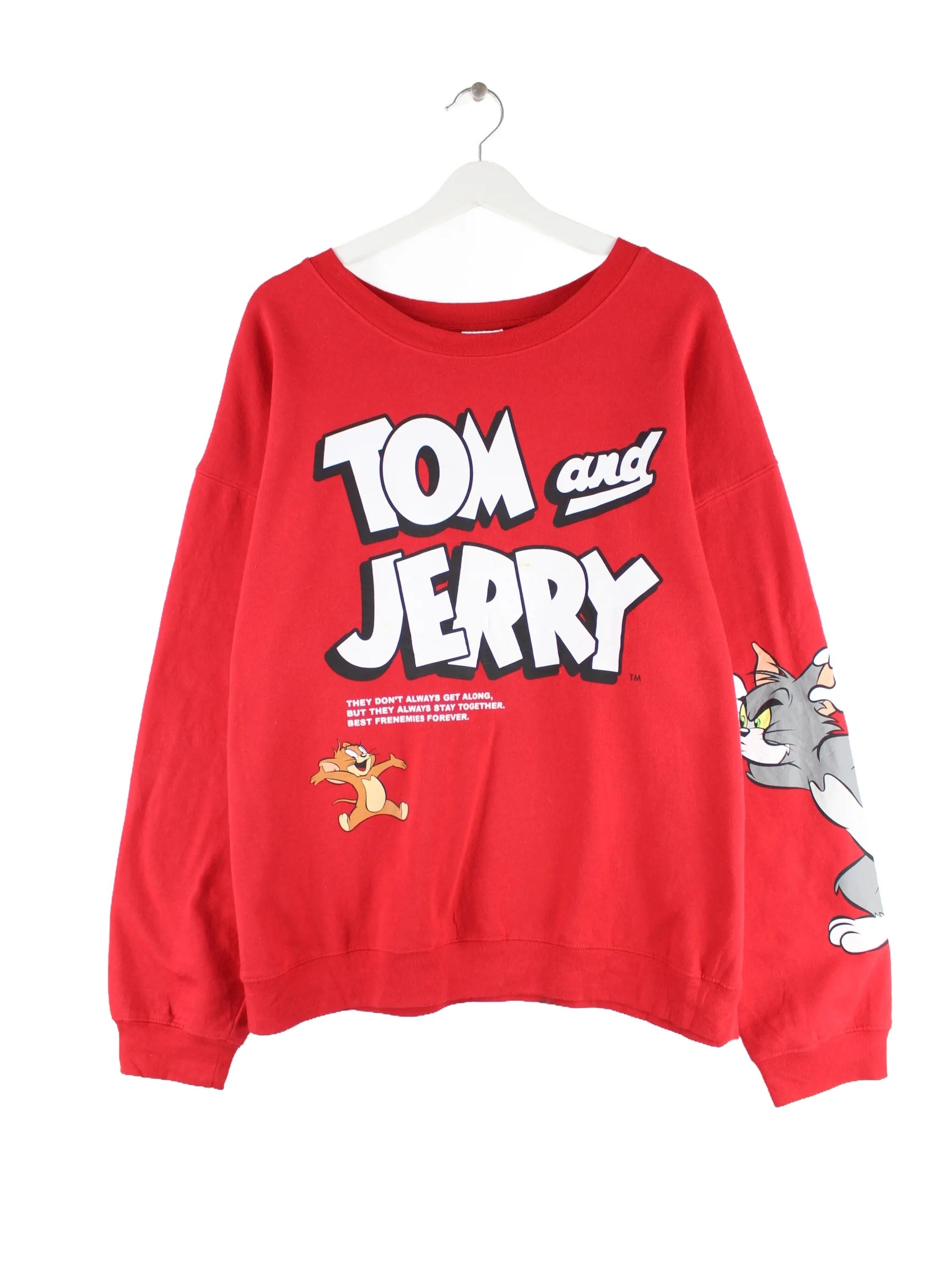 Vintage Damen Tom & Jerry Print Sweater Rot XXL
