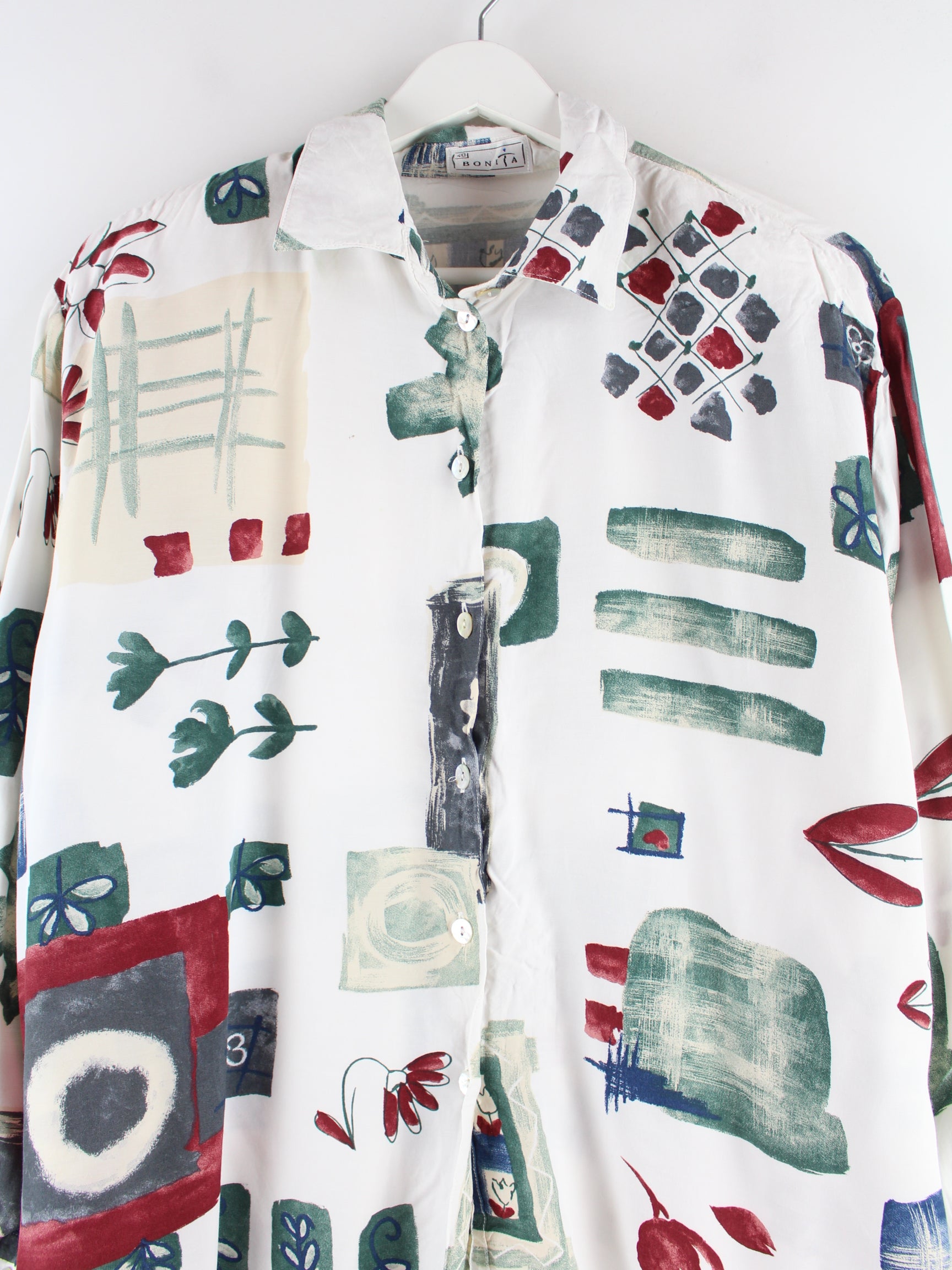 White vintage casual shirt from the early 2000s in size M. It is made of a cotton blend and is in good condition.