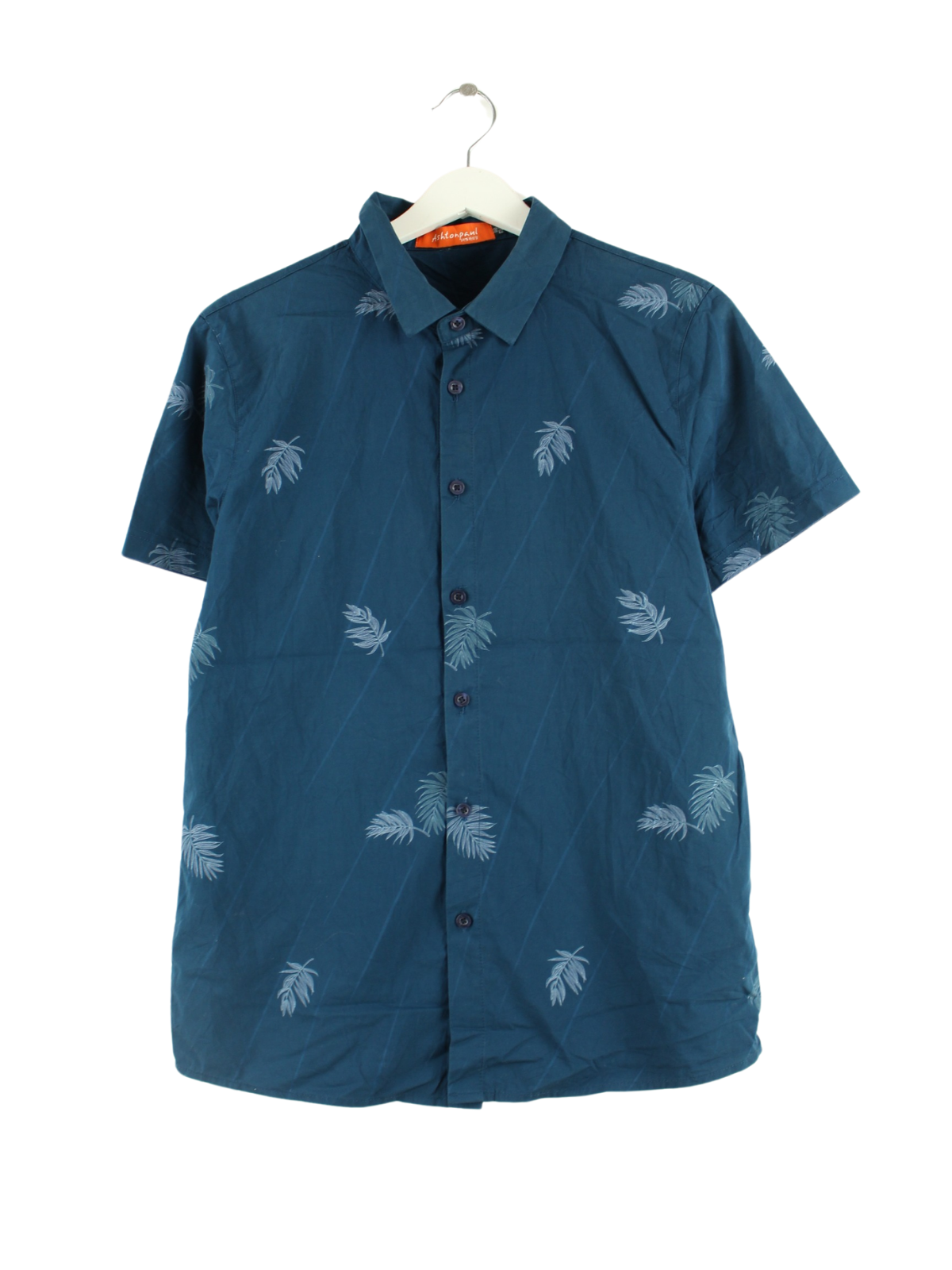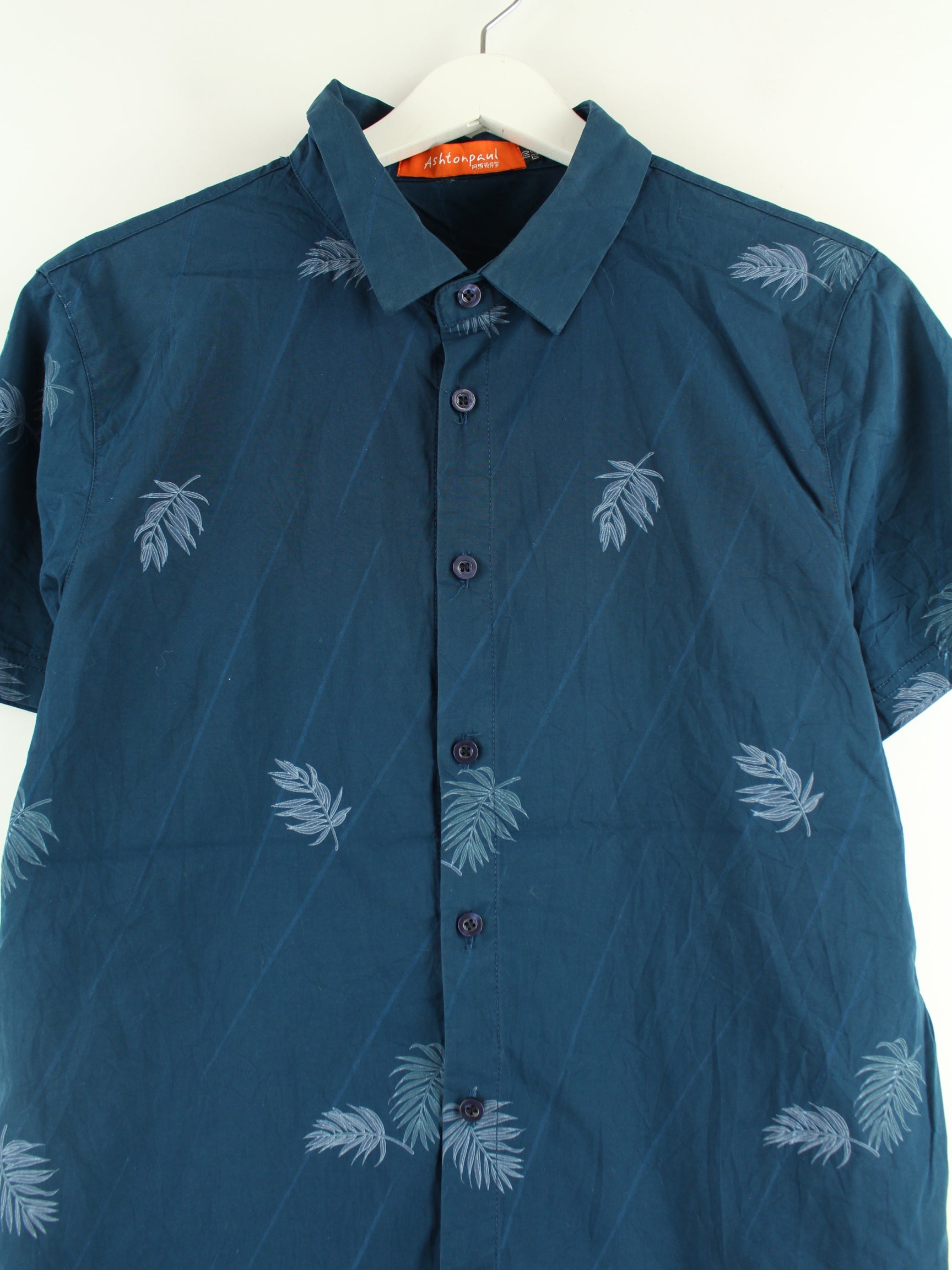 Vintage Pattern Short Sleeve Shirt Blue XXS
