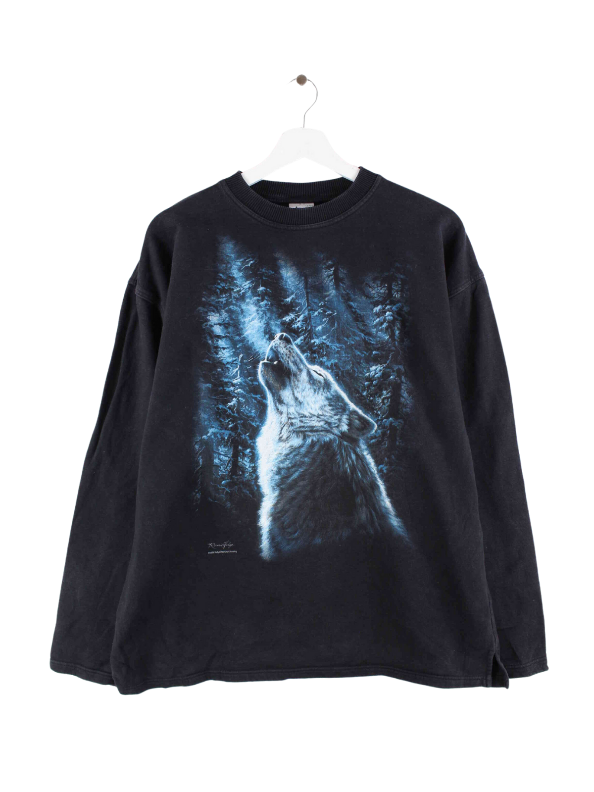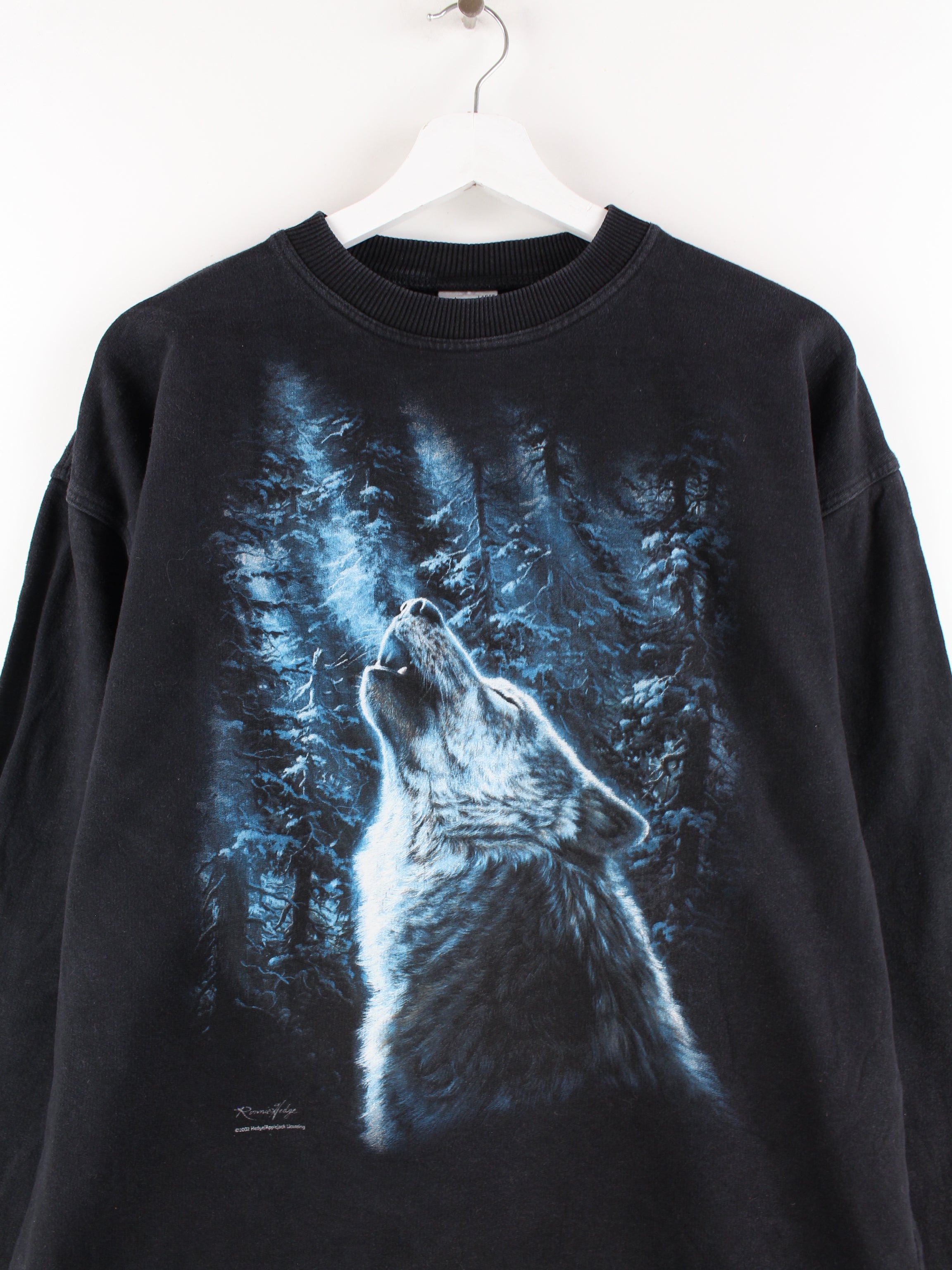 Vintage Wolf Print Sweater Black L
