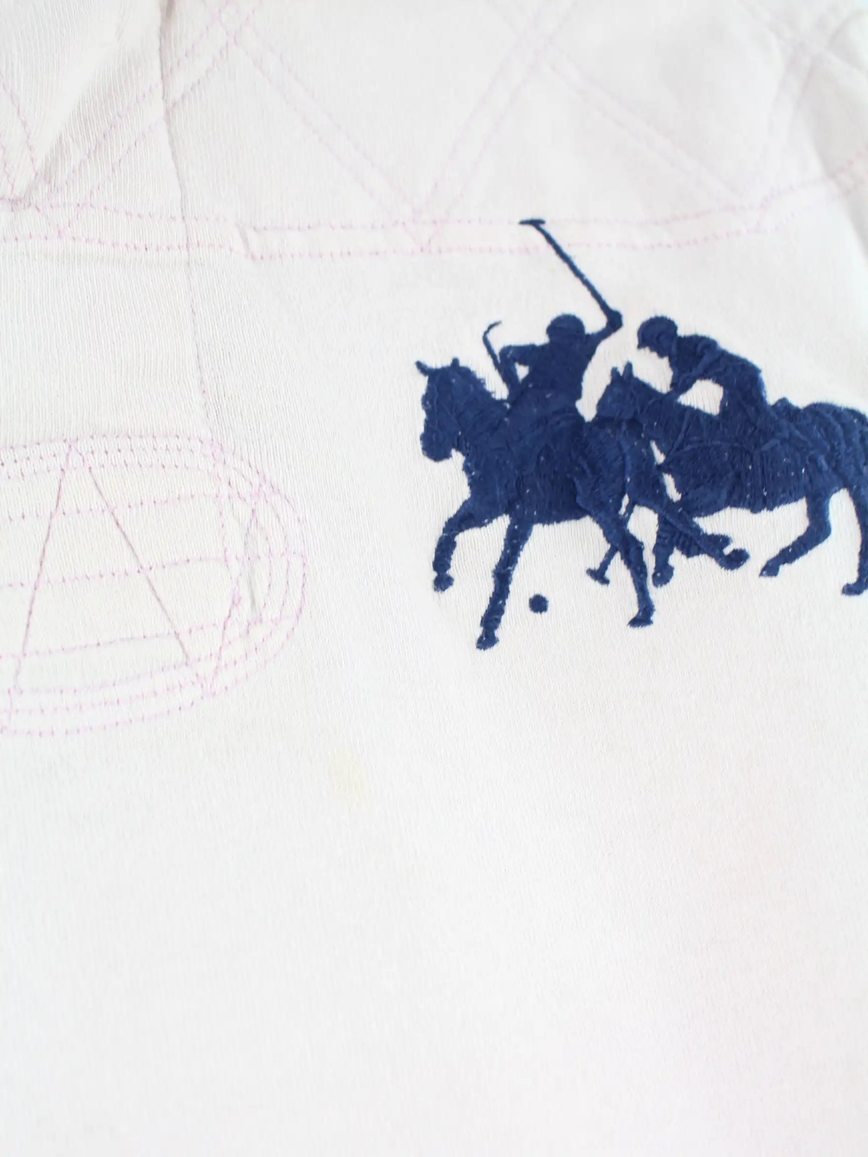Rosafarbenes Poloshirt aus dem Hause Ralph Lauren aus den 90'ern in Größe L. Es ist aus Baumwolle angefertigt und in gutem Zustand vorrätig.