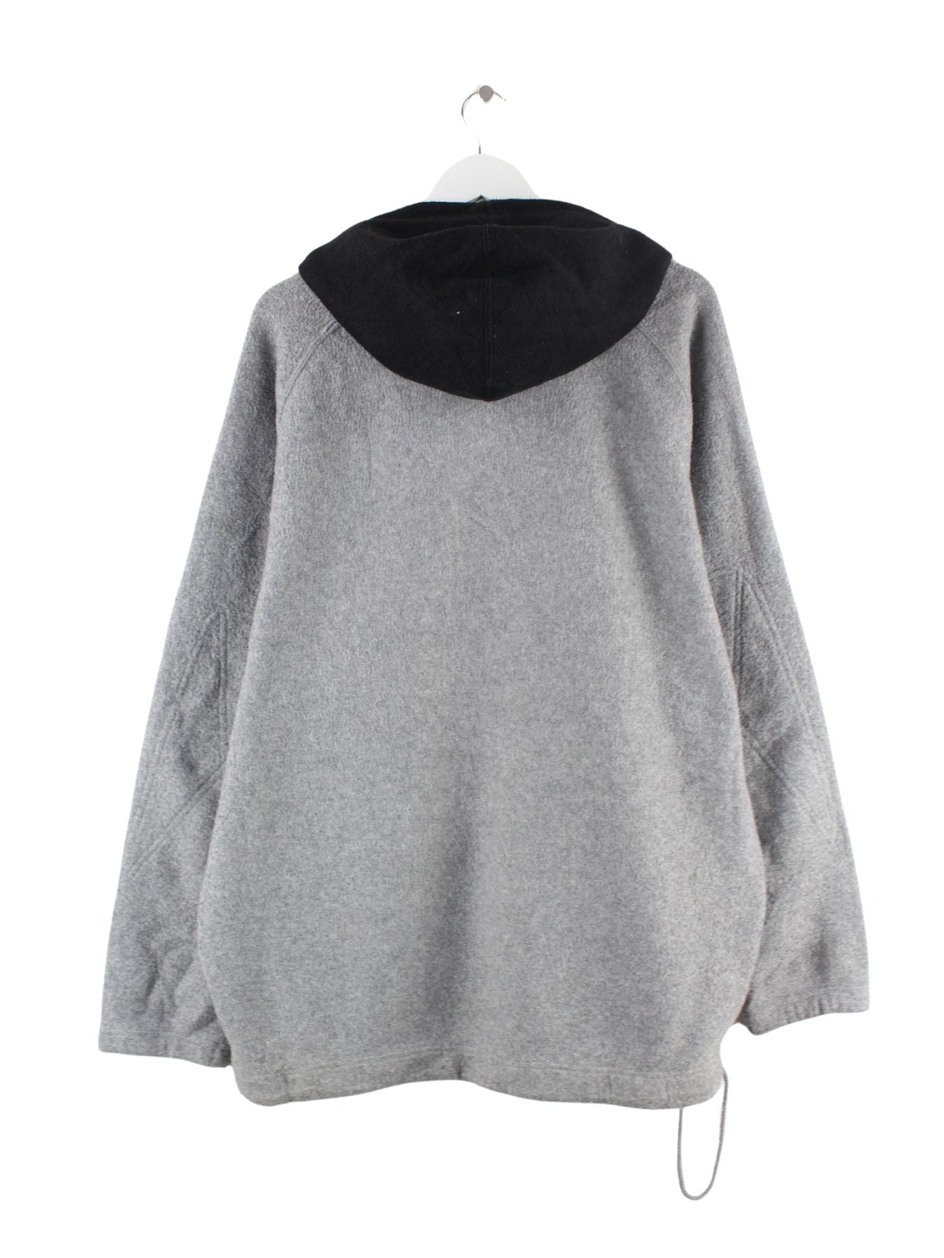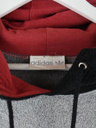 Hoodie vom Label Adidas mit gesticktem Logo in Größe 3XL aus den 80'ern. Er ist aus Synthetik produziert und in Grau bei uns zu bekommen.