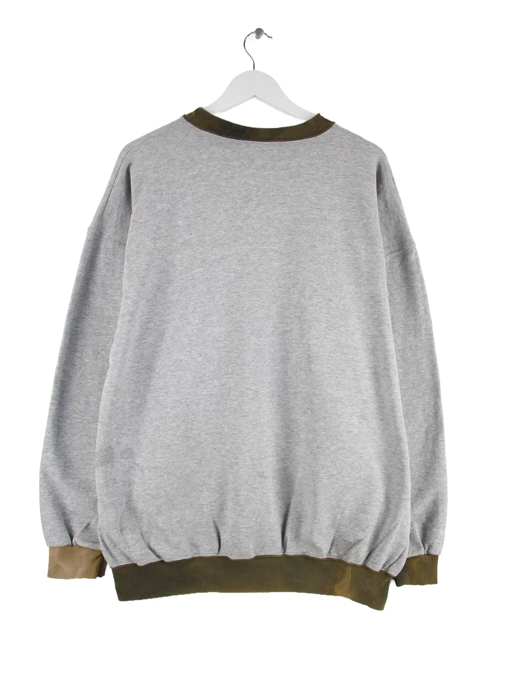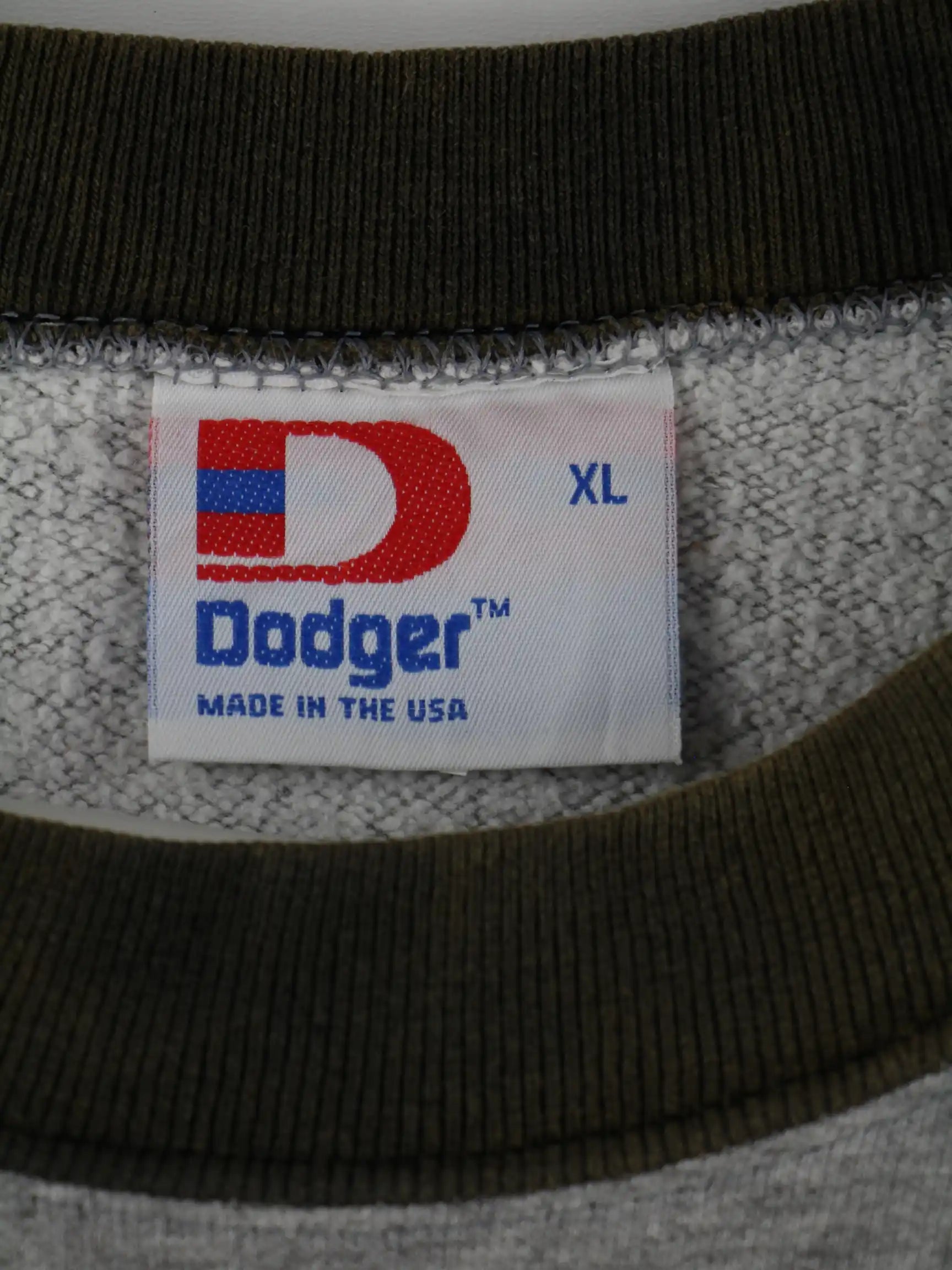 Grauer Sweater vom Label Dodger aus den 90'ern in Größe XL. Er ist aus einer Baumwollmischung angefertigt und in gutem Zustand lieferbar.