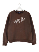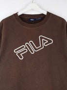 Sweater der Marke Fila in Größe XL mit großem Logo auf der Brust. Er ist aus einer Baumwollmischung produziert und in Braun bei uns vorrätig.