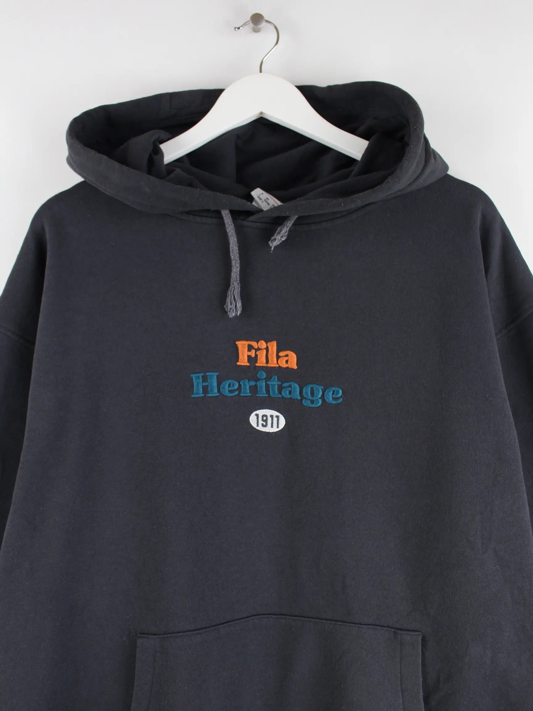 Grauer Hoodie aus dem Hause Fila in Größe XXL. Er ist aus einer Baumwollmischung hergestellt und in gutem Zustand vorrätig.