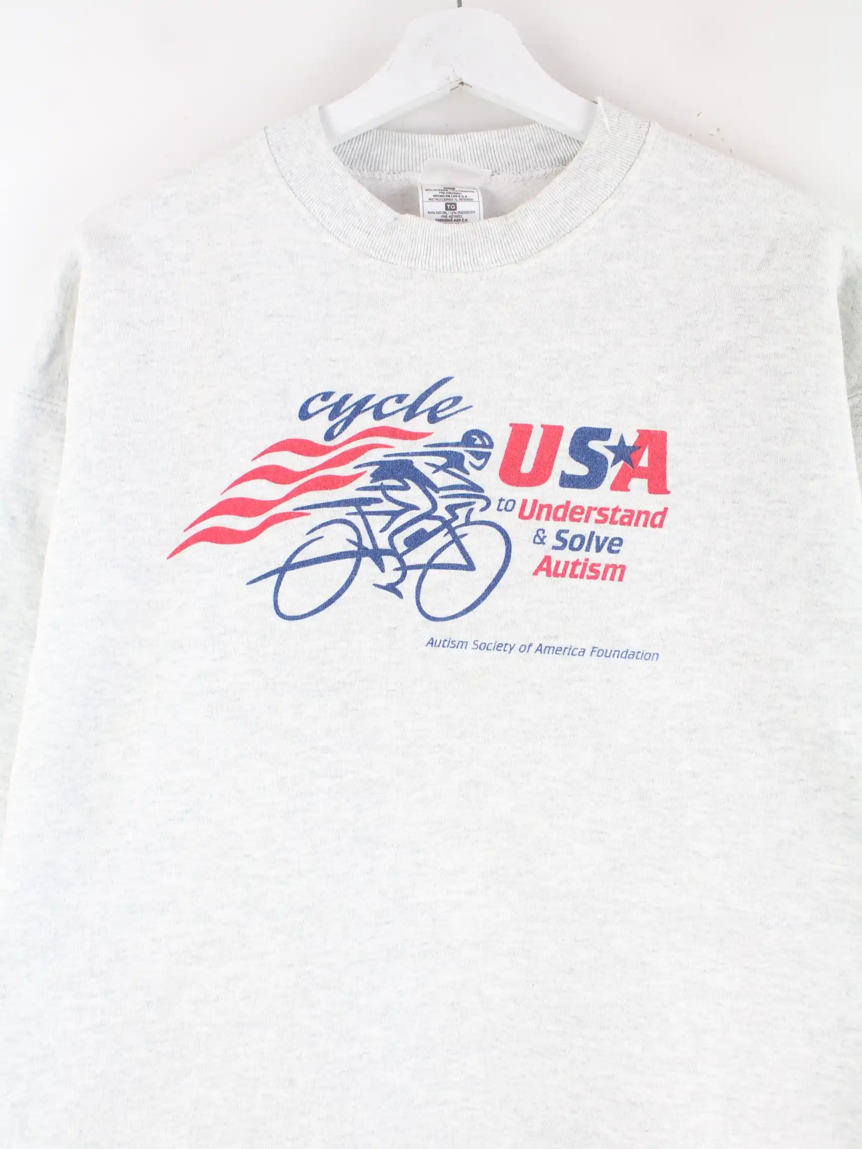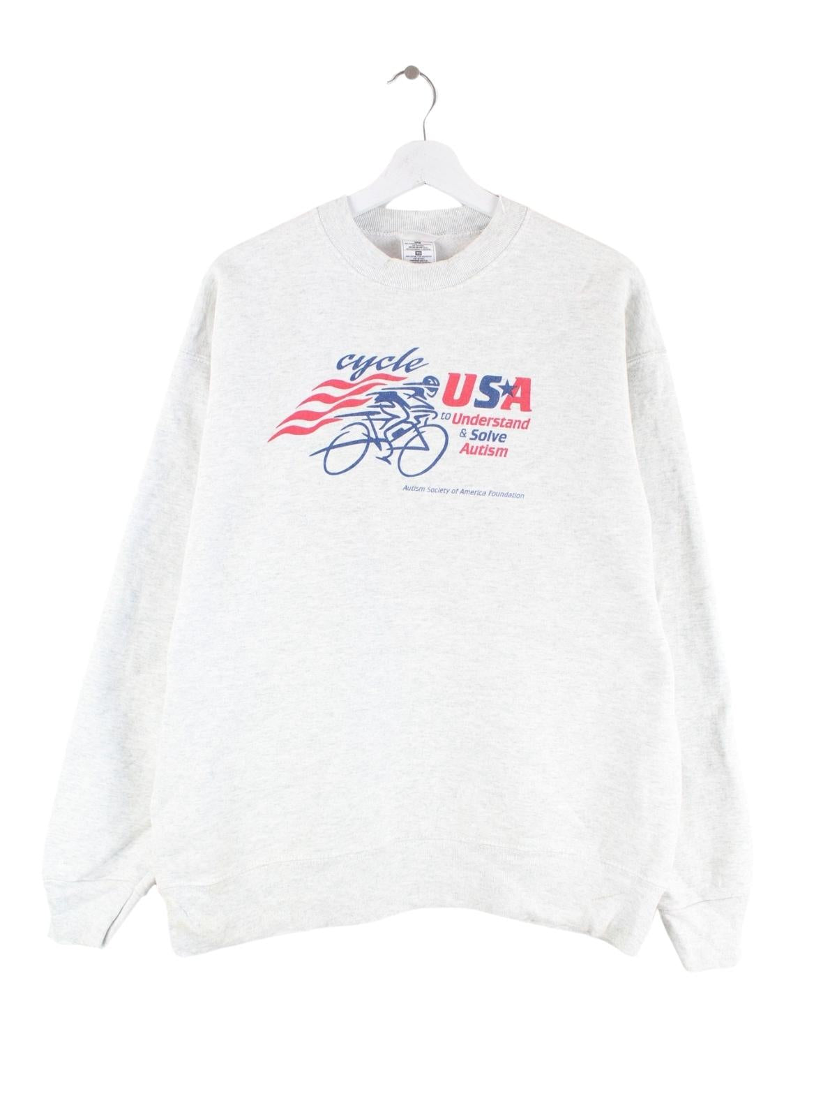 Fruit of the Loom 90s Vintage USA Cycle Print Sweater Grau XL