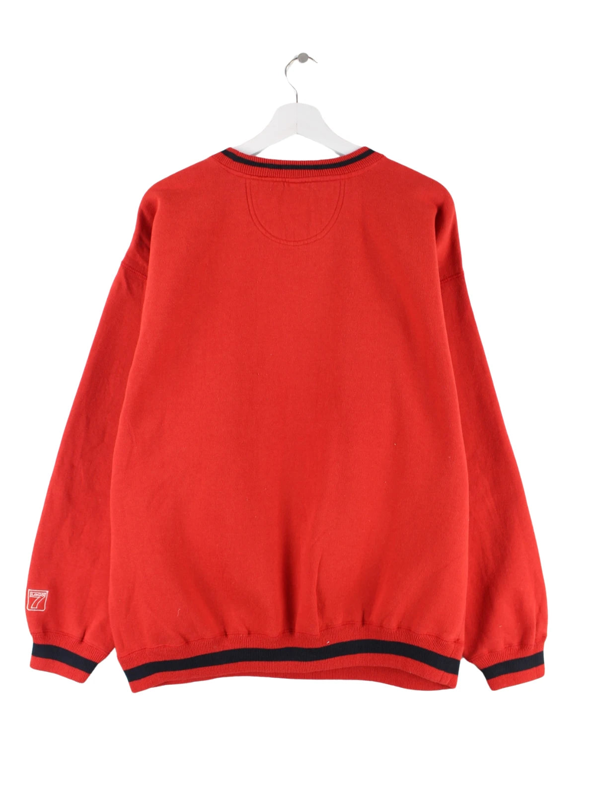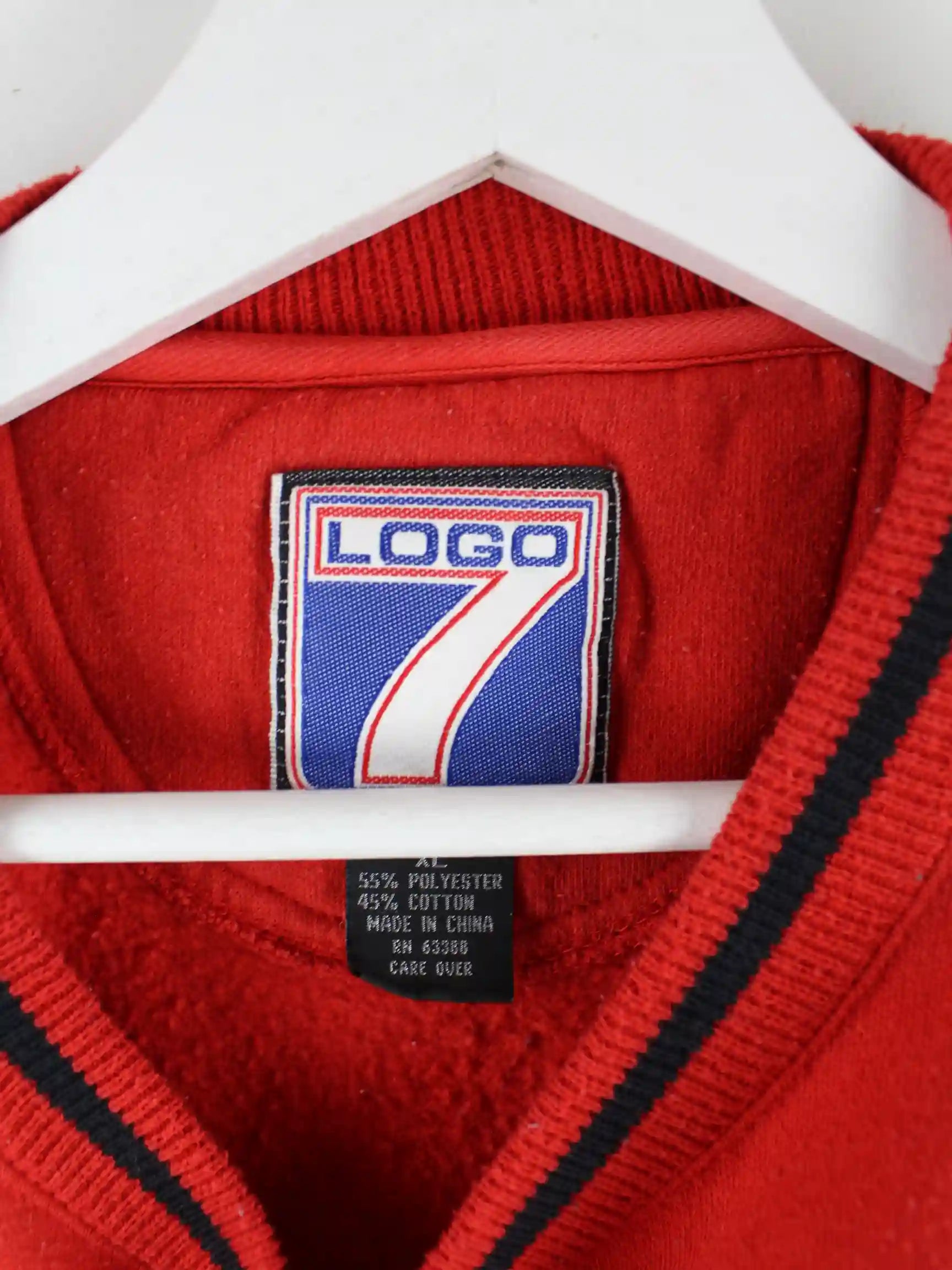 Roter Sweater vom Label Logo 7 aus den 90'ern in Größe XL. Er ist aus einer Baumwollmischung gemacht und in sehr gutem Zustand bei uns vorrätig.