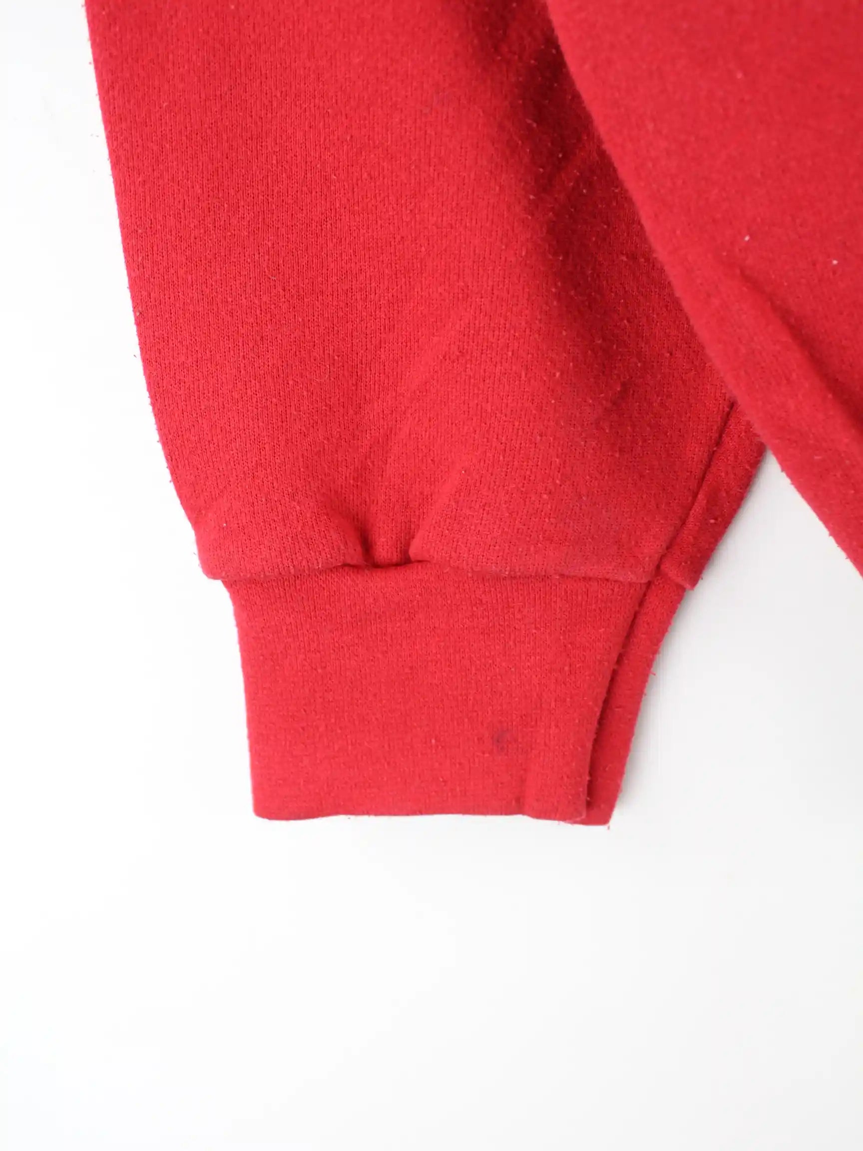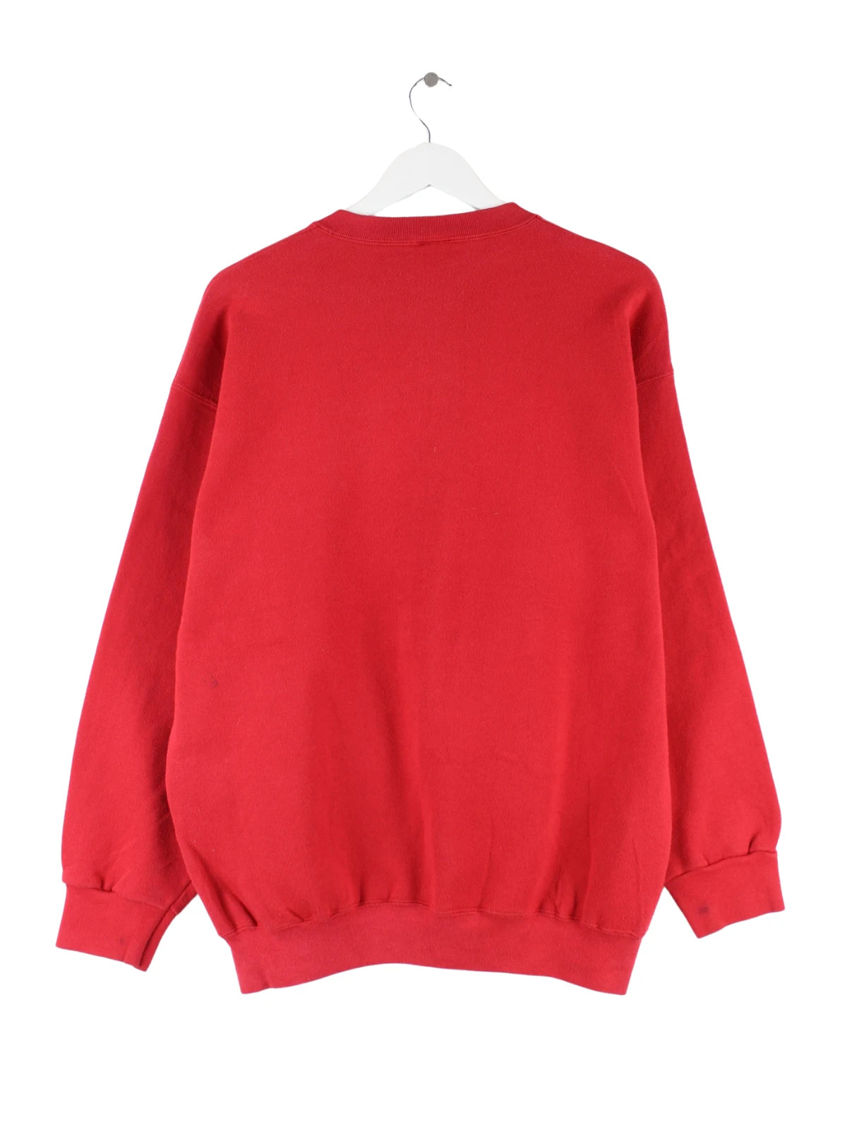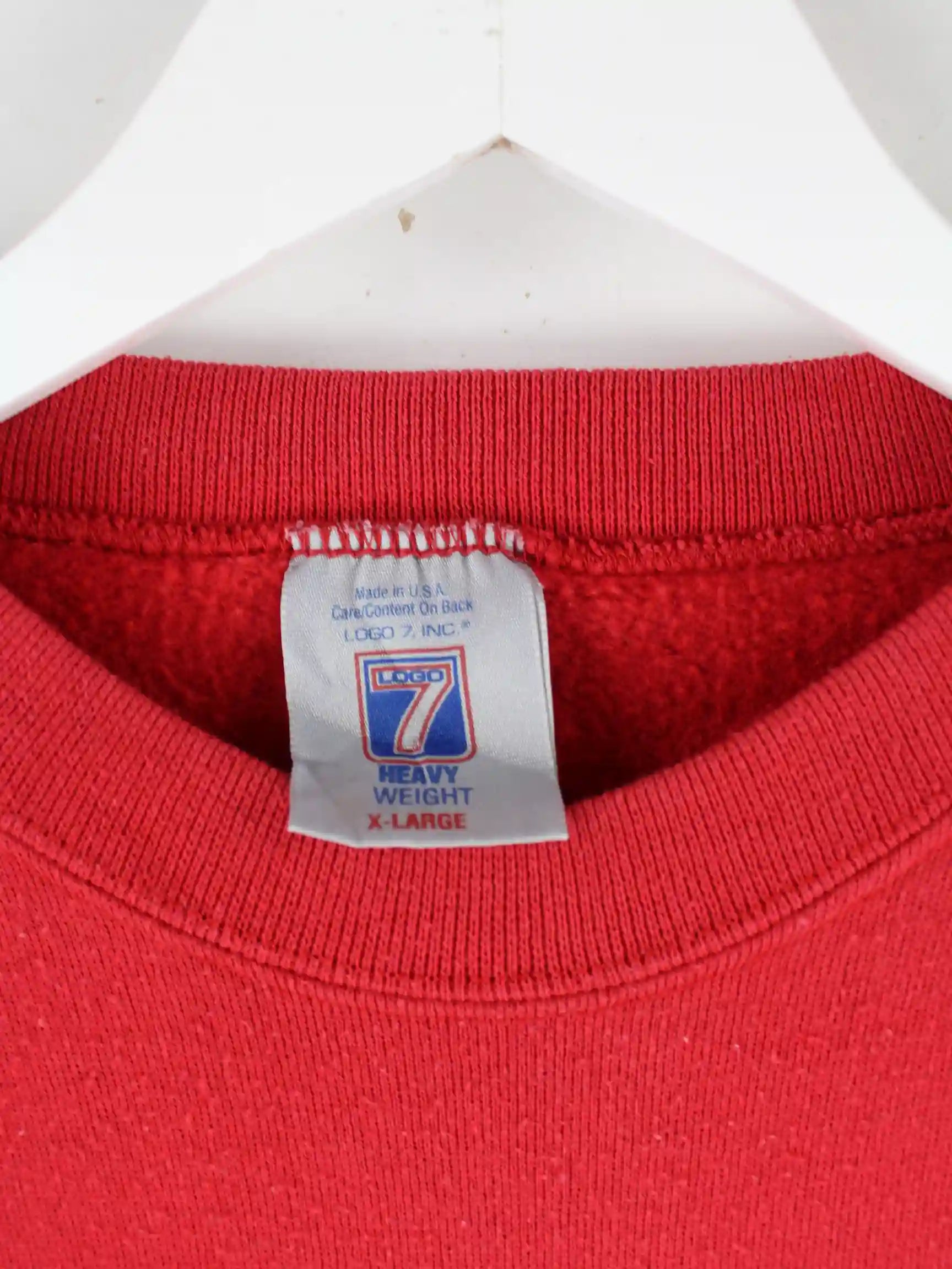 Roter Sweater vom Brand Logo 7 aus den 90'ern in Größe XL. Er ist aus einer Baumwollmischung produziert und in gutem Zustand in Stock.