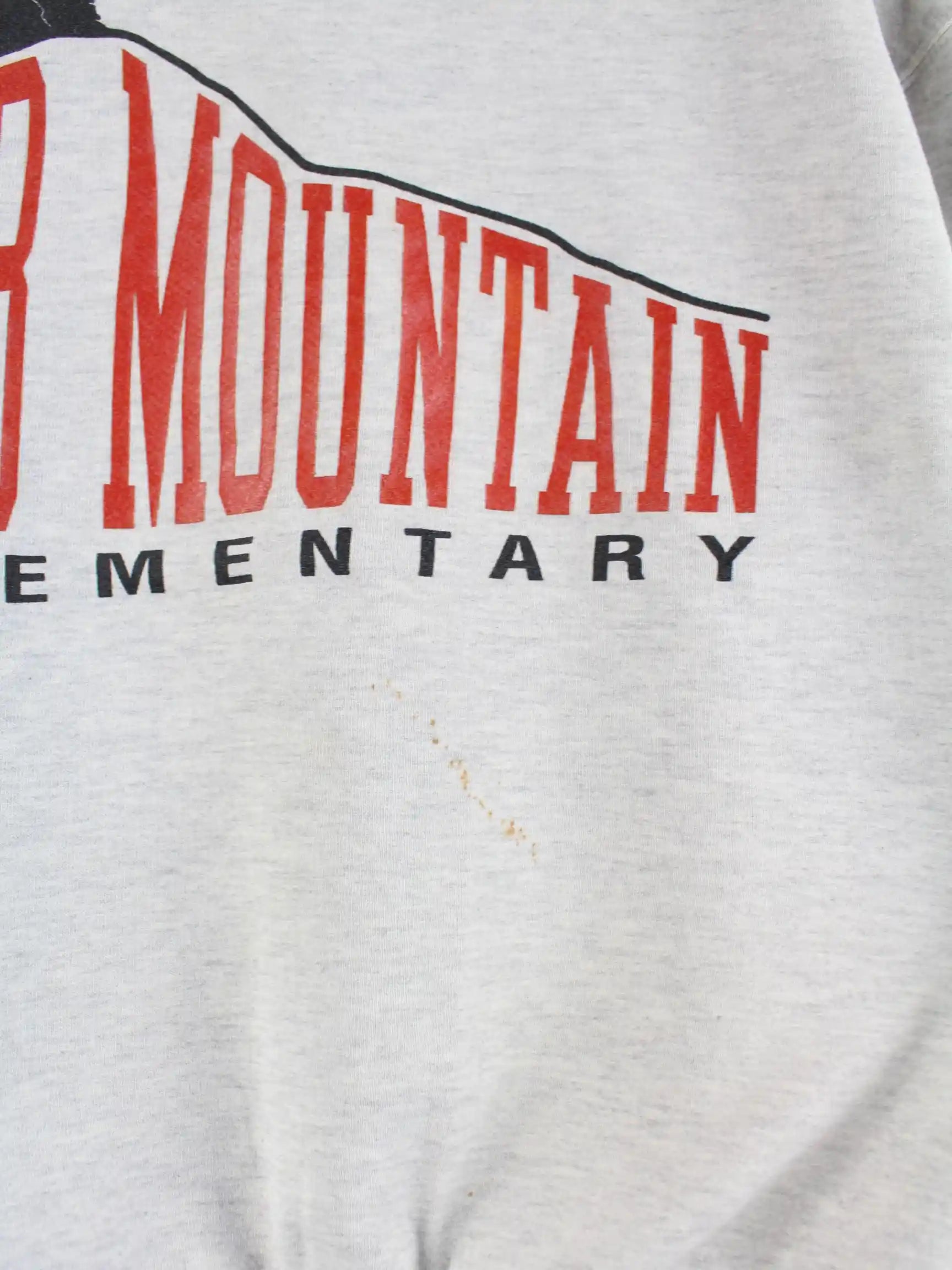 Sweater der Marke Russell Athletic in Größe XL aus den 90'ern. Er ist aus einer Baumwollmischung hergestellt und in Grau in Stock. Mit tollem Mouintain Print.