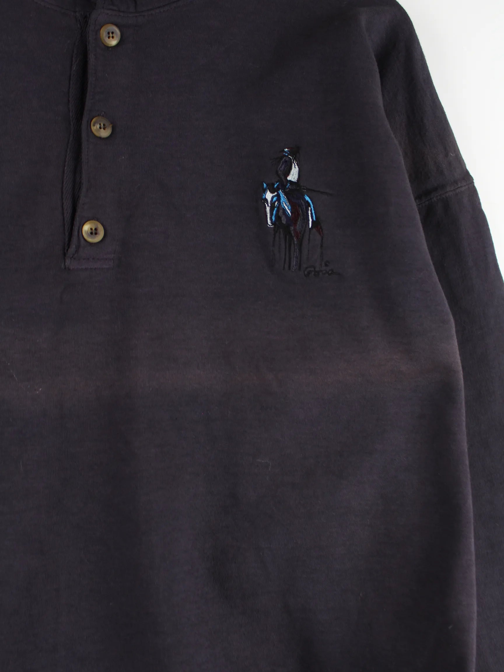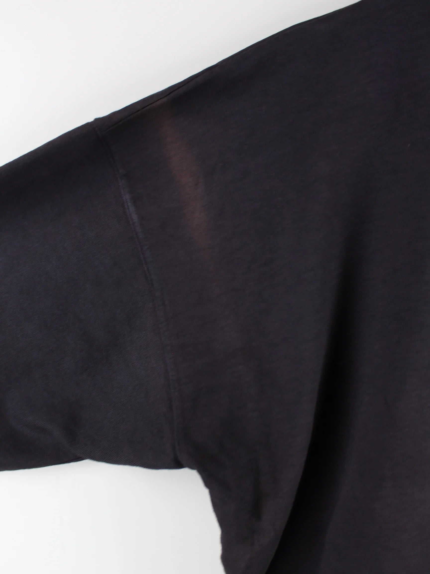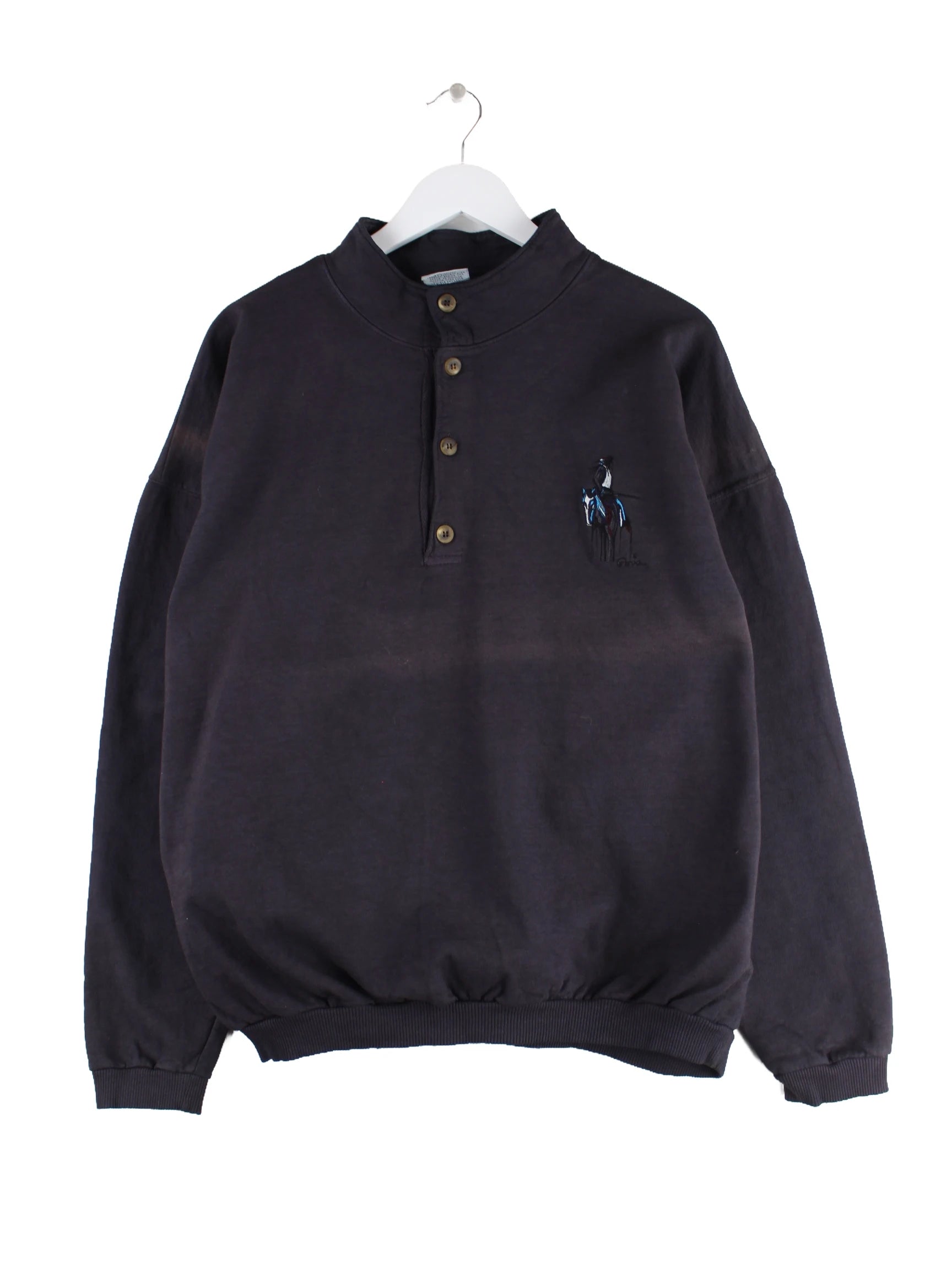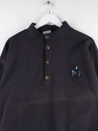 Schwarzer Vintage Sweater in Größe L. Er ist aus einer Baumwollmischung produziert. Den Zustand würden wir als 'In Ordnung' bezeichnen (vergl. Bilder).