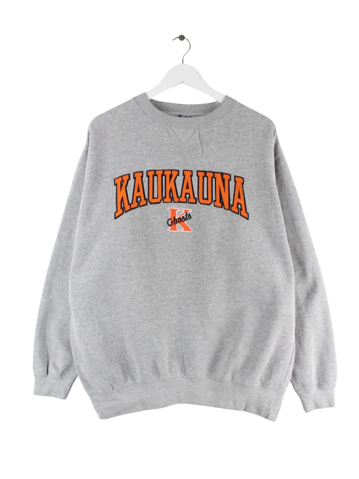 Vintage 00s Kaukauna Ghosts Embroidered Sweater Grau L