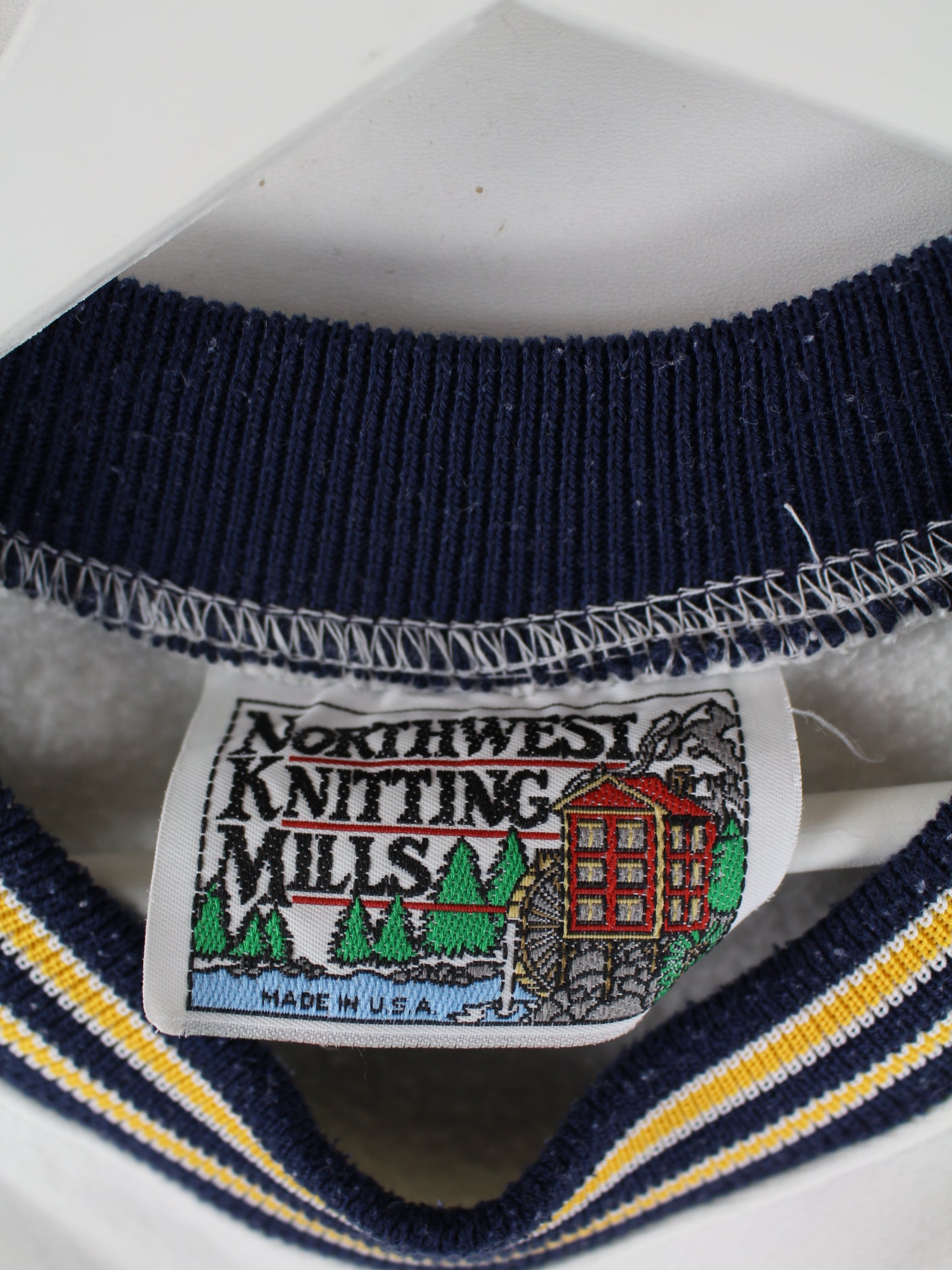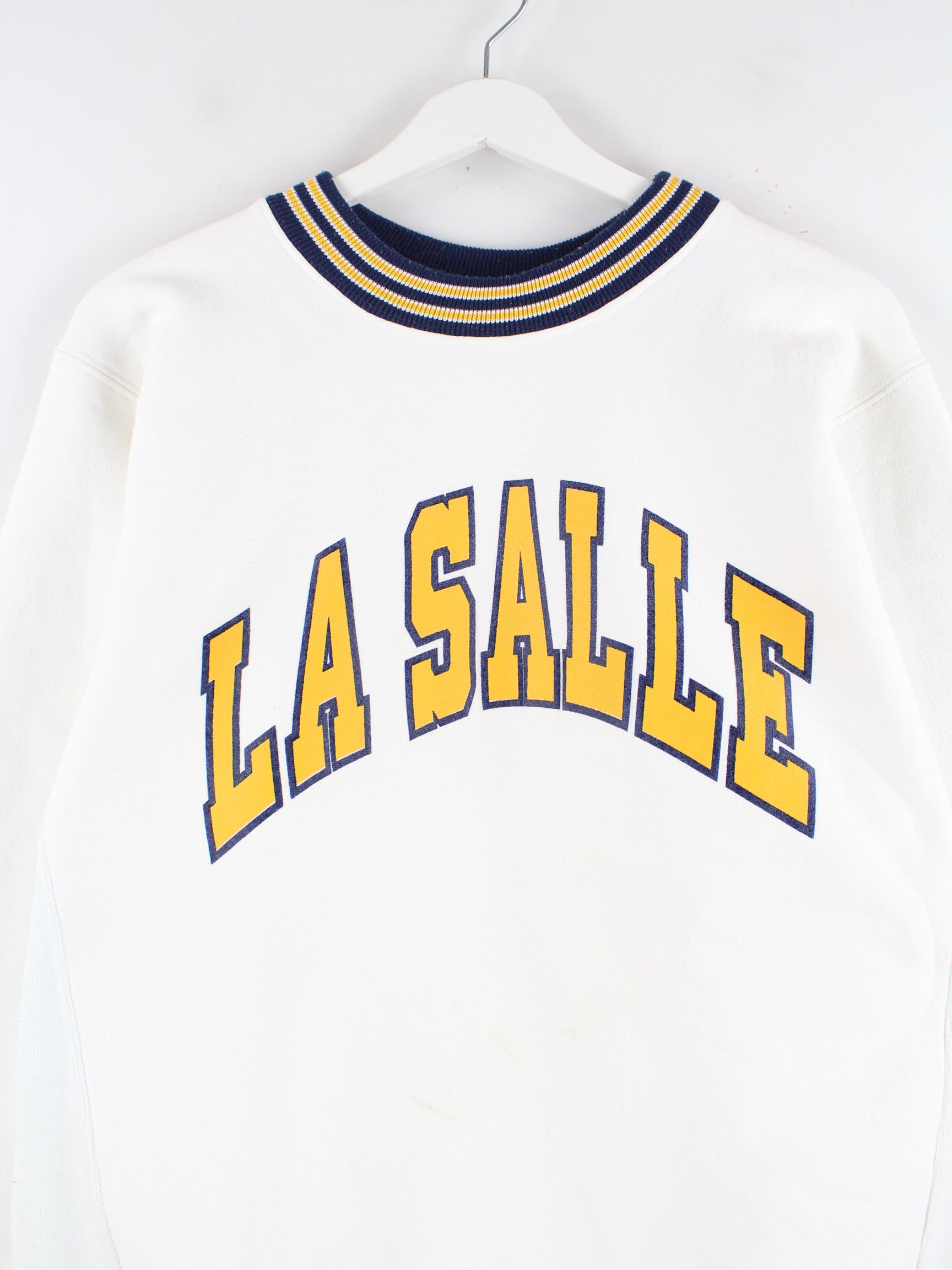 Vintage 80s La Salle Print Heavy Sweater Weiß L