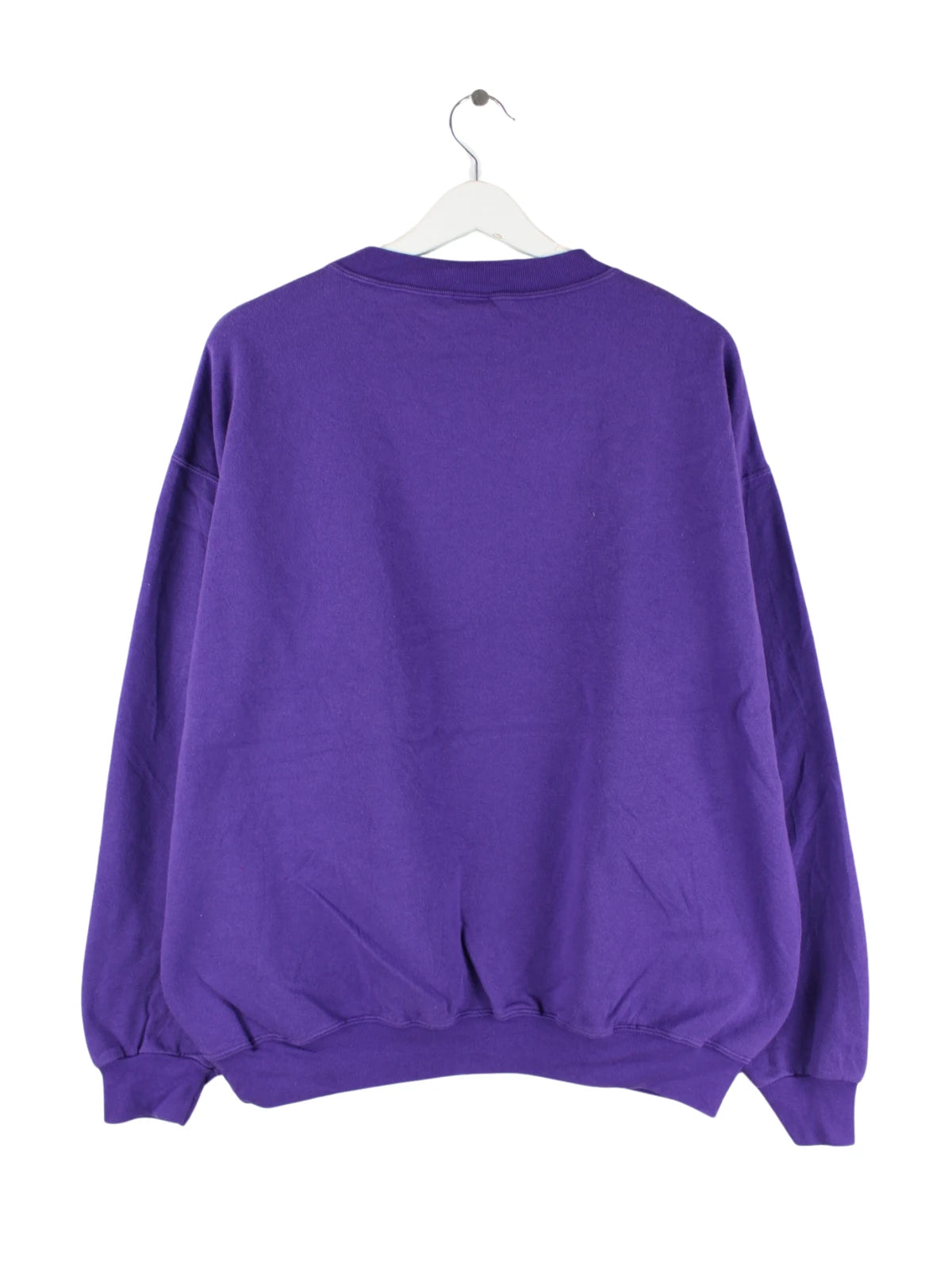 Vintage Sweater in Größe XL aus den 90'ern. Er ist aus einer Baumwollmischung angefertigt und in Lila bei uns vorrätig.