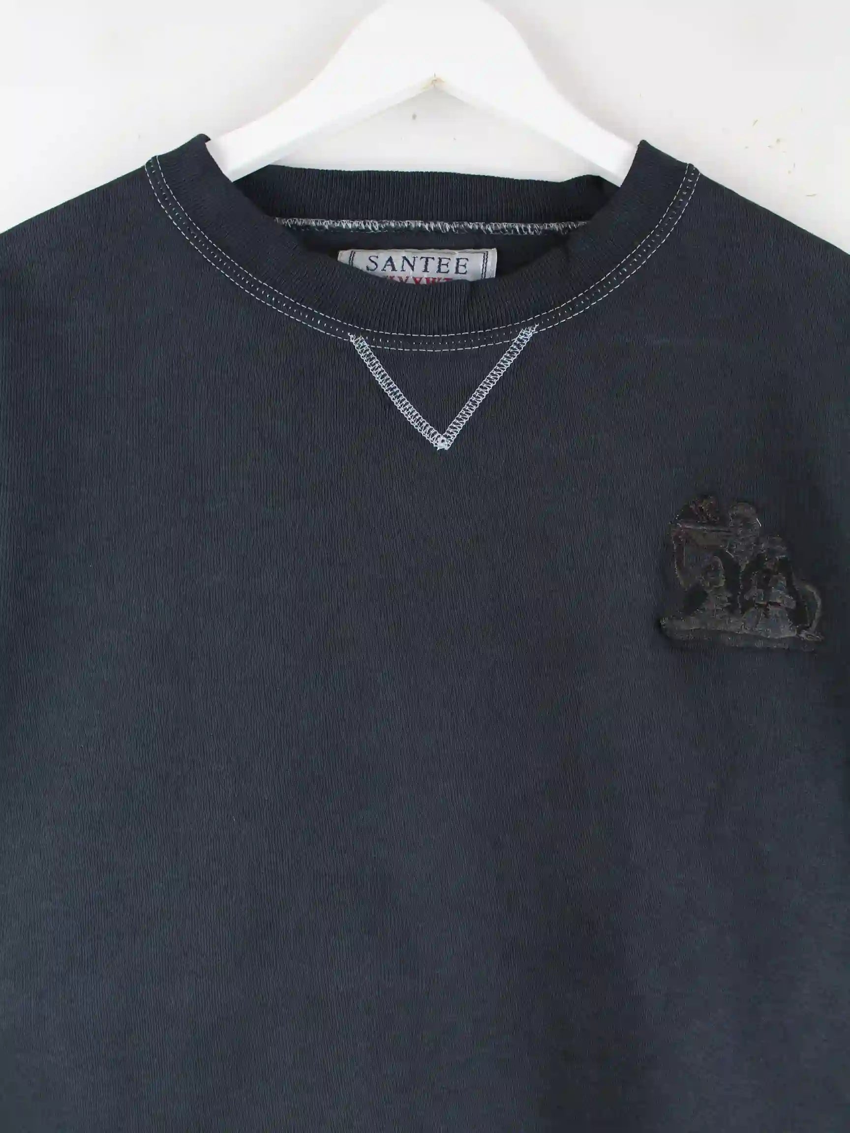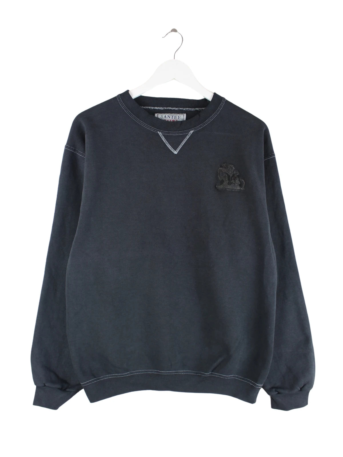 Vintage Sweater in Größe S aus den 90'ern. Er ist aus einer Baumwollmischung gefertigt und in Grau im Bestand.
