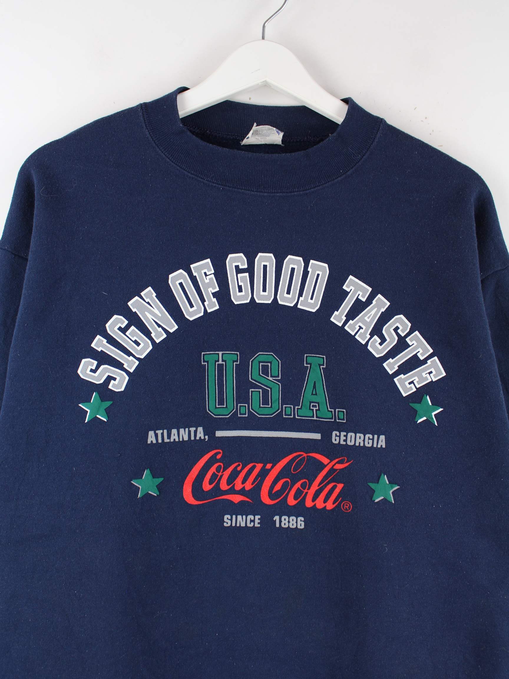 Vintage 90s USA Coca Cola Print Sweater Blau L