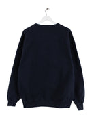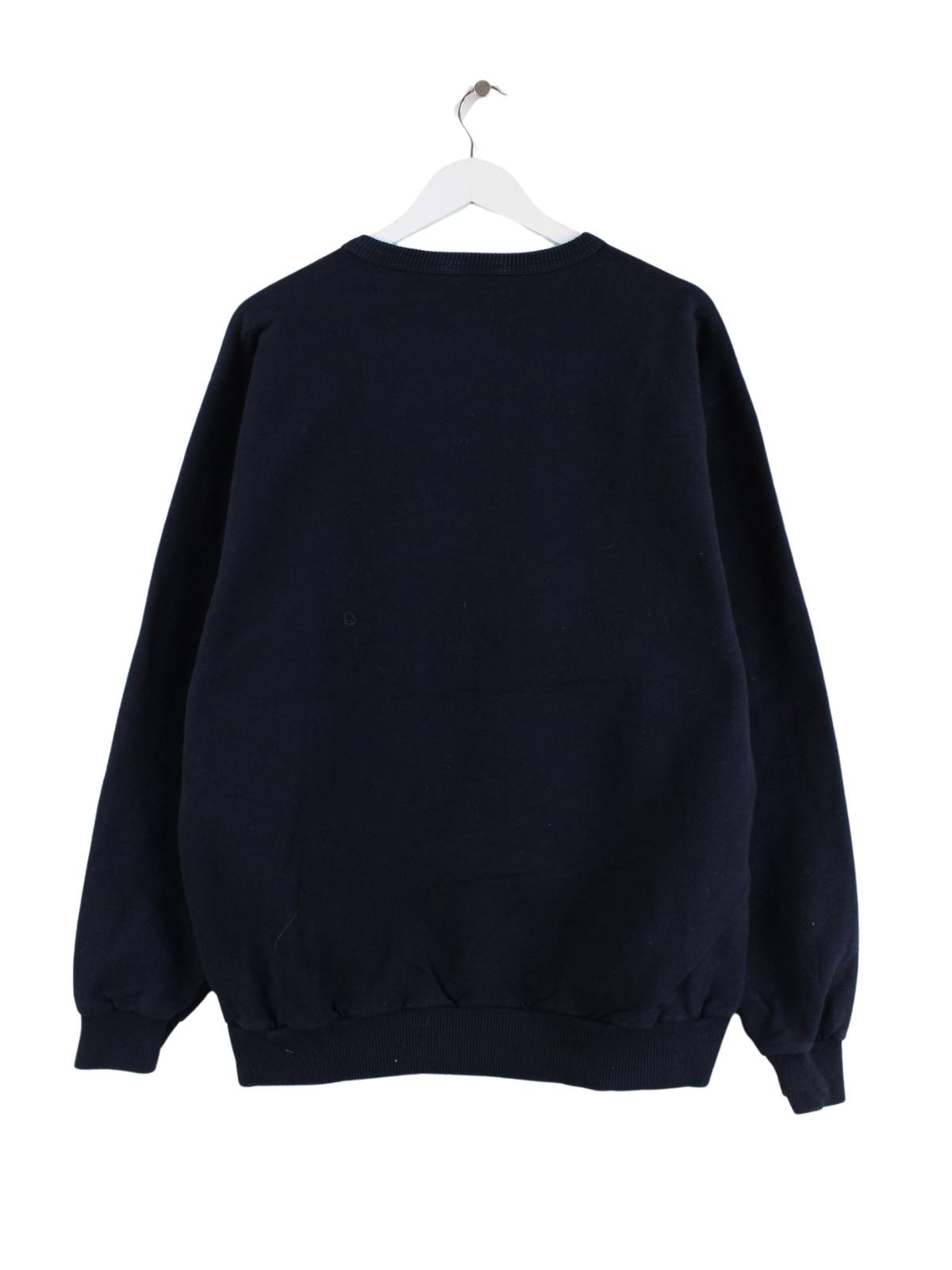 Blauer Vintage Sweater mit Stickereien in Größe XL. Er ist aus einer Baumwollmischung gemacht und in sehr gutem Zustand vorrätig.