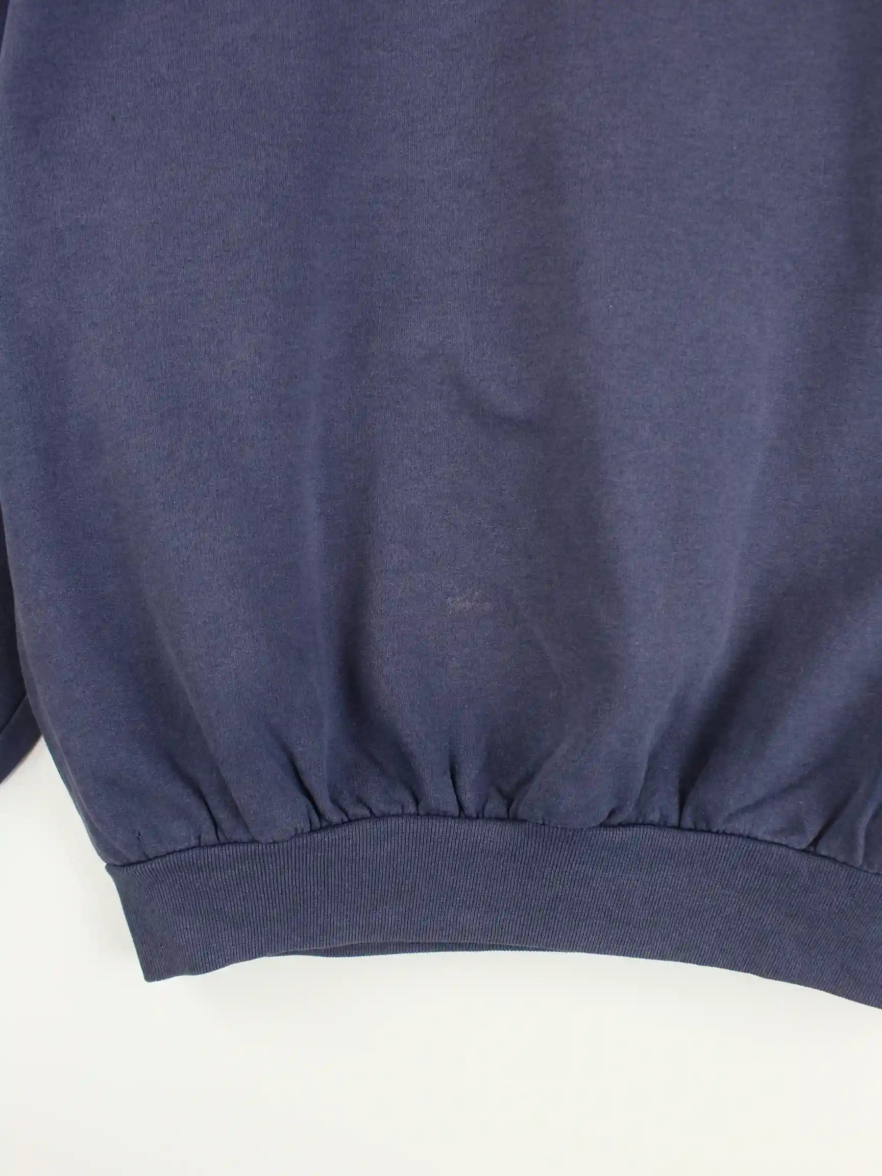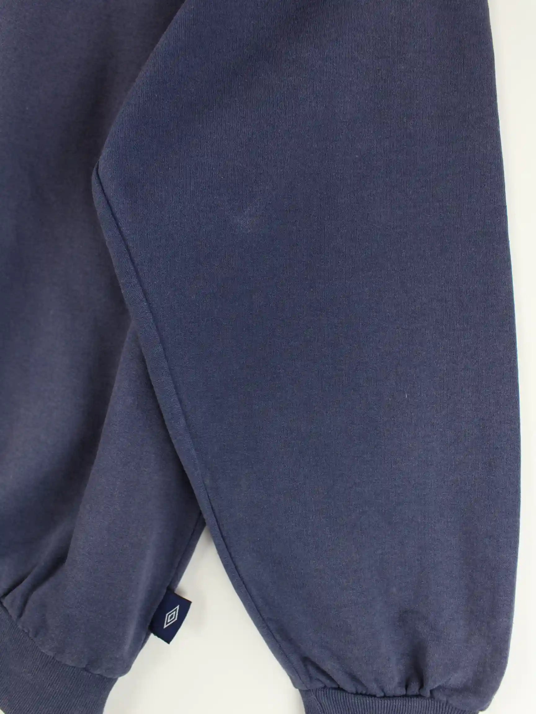Blauer Sweater von Umbro aus den 90'ern in Größe XS. Er ist aus einer Baumwollmischung gefertigt. Den Zustand würden wir als 'In Ordnung' bezeichnen (vergl. Bilder).