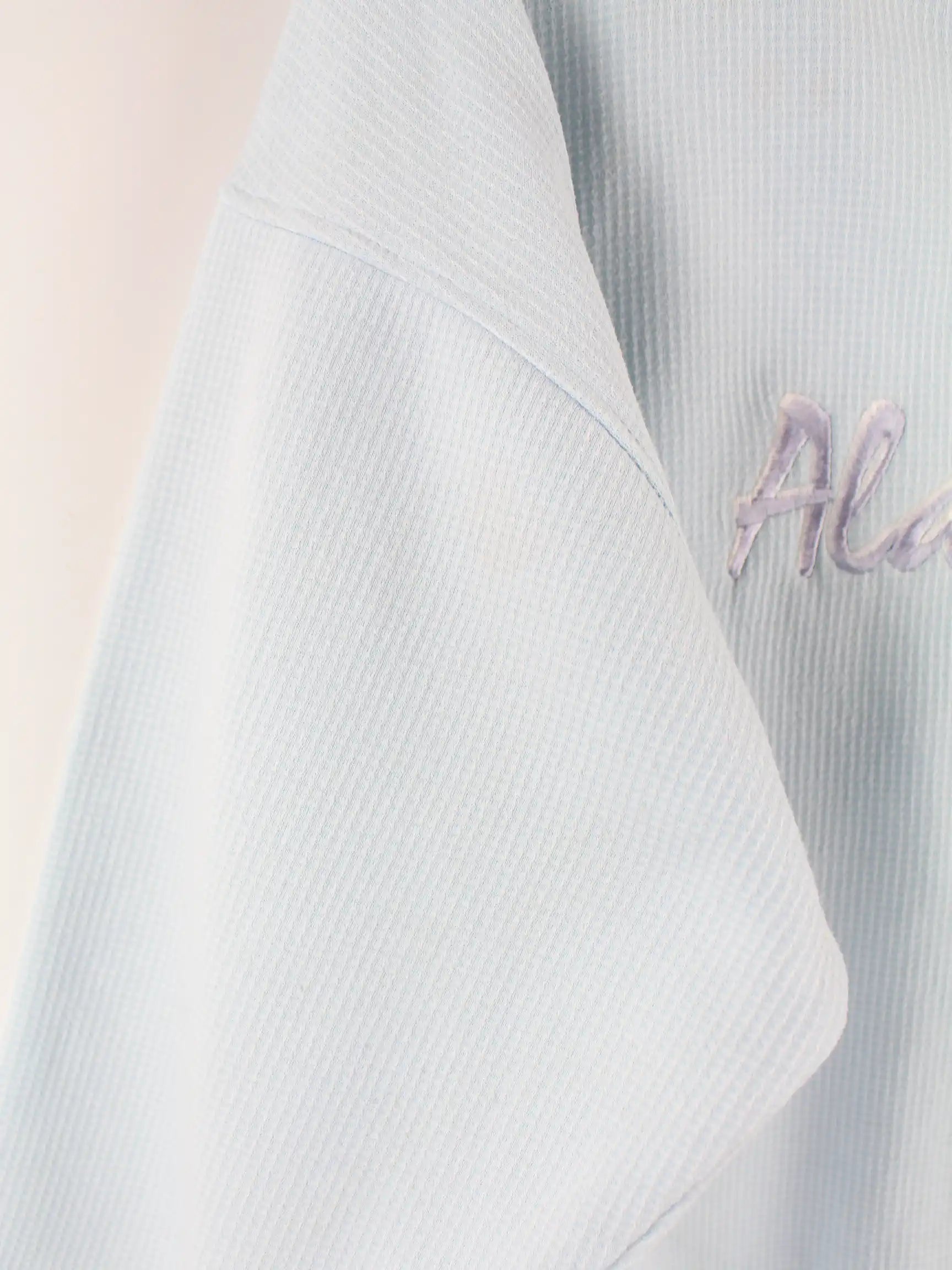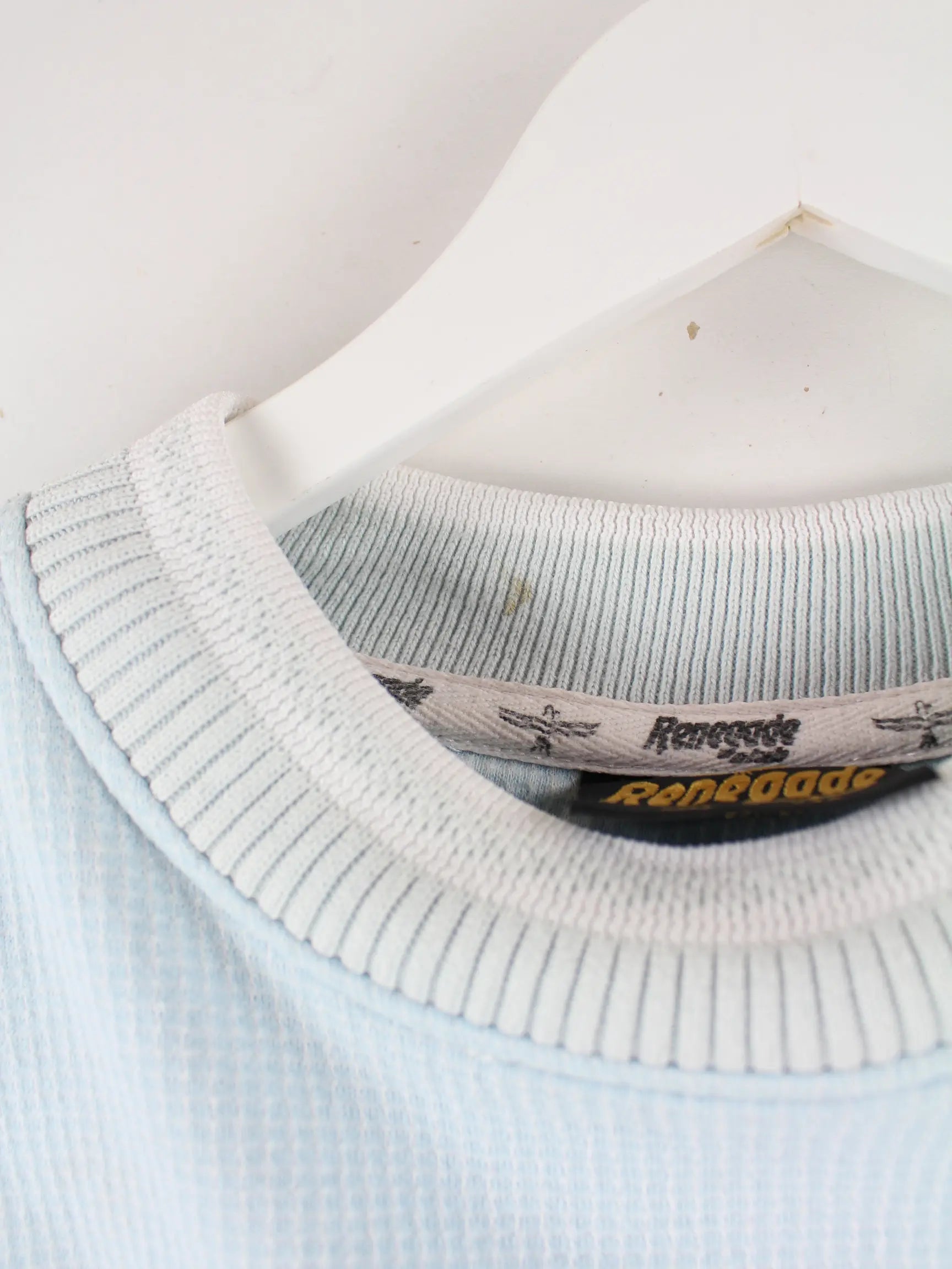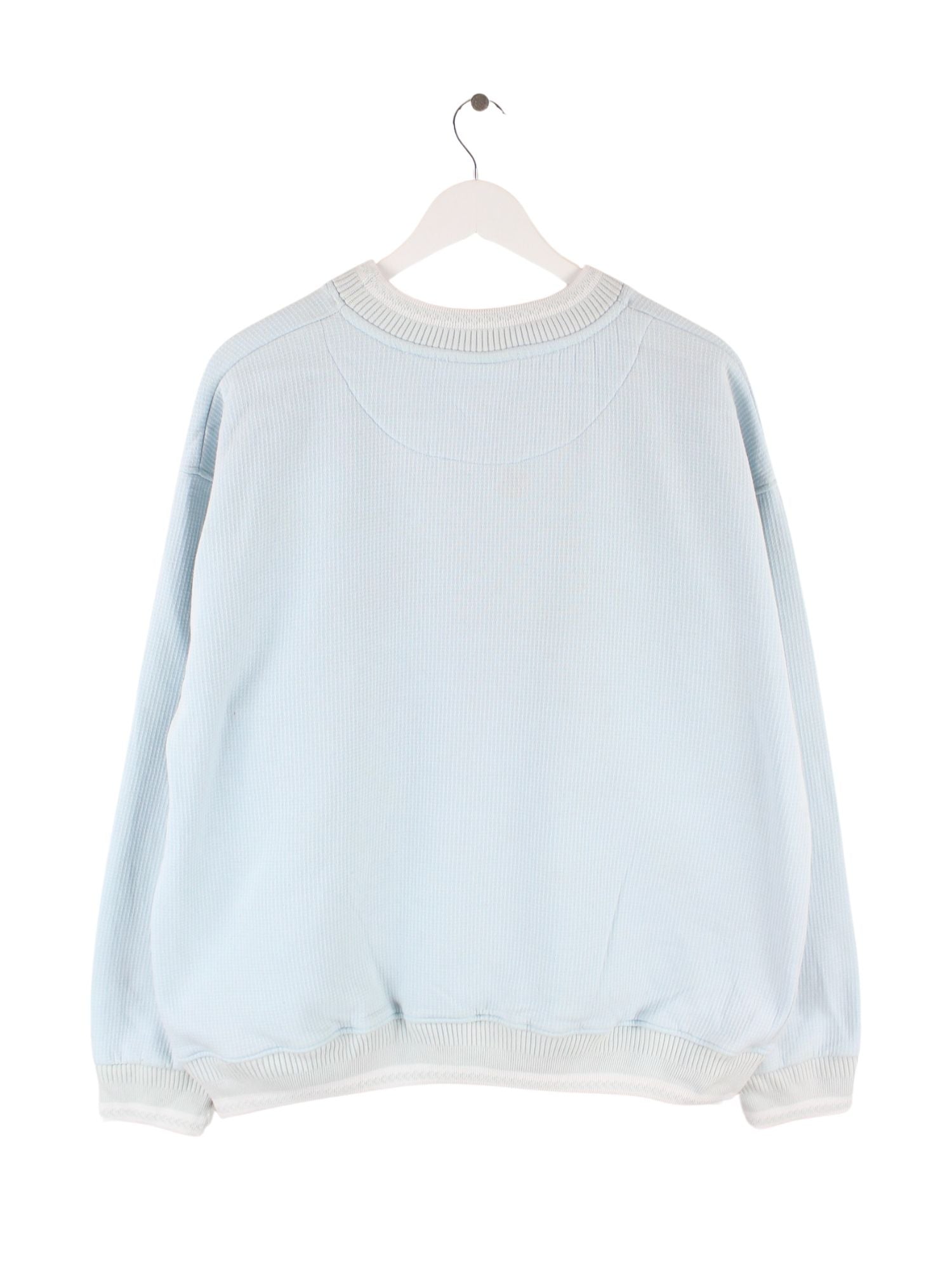Vintage Sweater in Größe L aus den 90'ern. Er ist aus einer Baumwollmischung und in Blau bei uns zu bekommen.