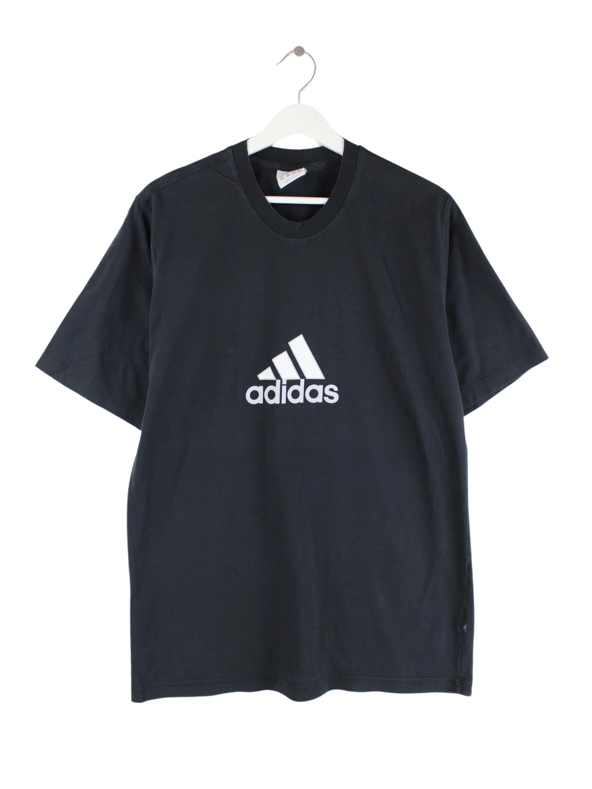 T-Shirt von Adidas in Größe L. Es ist aus Baumwolle gefertigt und in Schwarz im Bestand. Mit chiquem Logo Print.